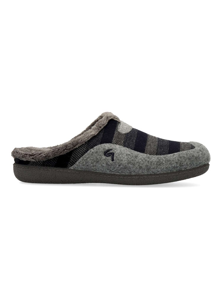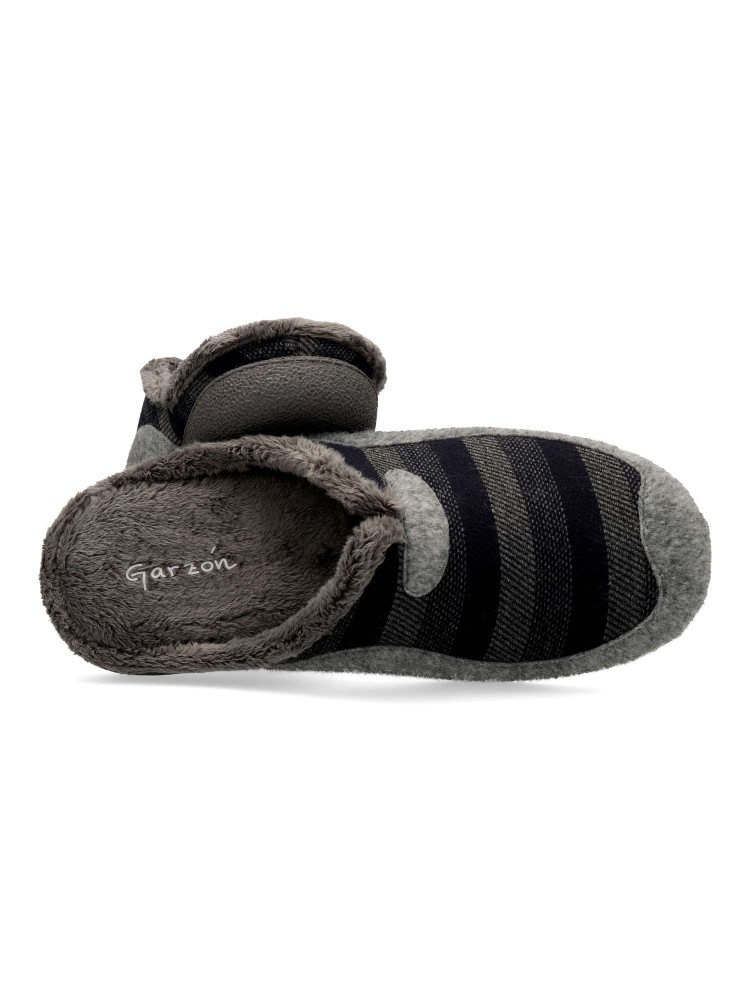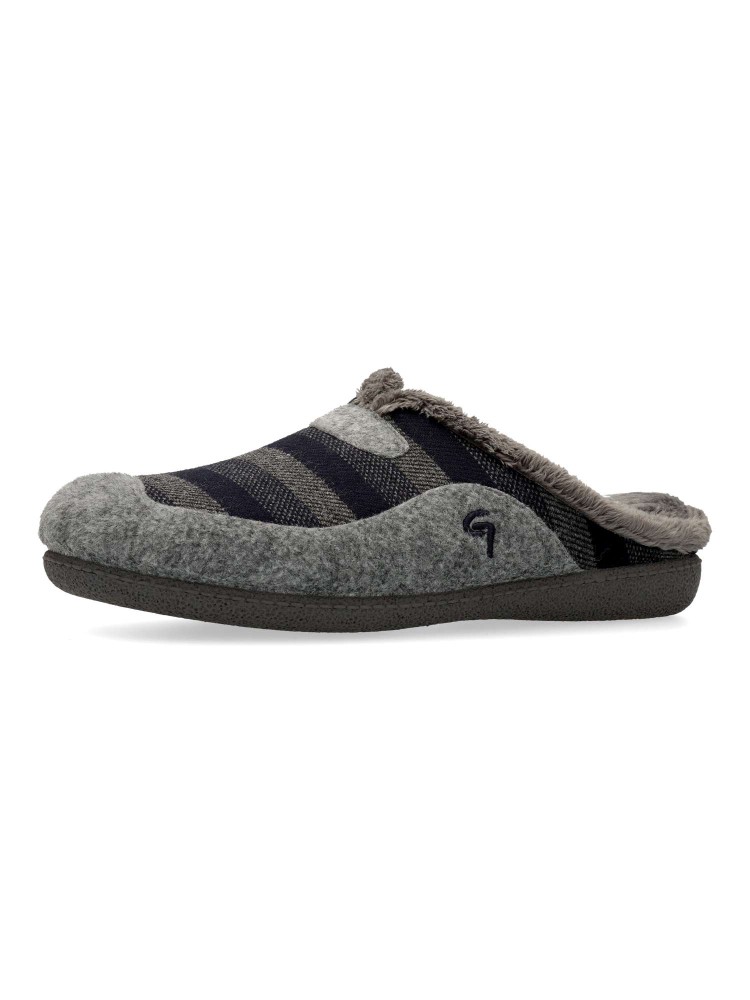 Zapatilla de casa para hombre. Disponible en color marino-gris oscuro. Piso de goma flexible y antideslizante. Planta acolchada. Modelo ligero, cómodo y abrigado para los días más fríos. Blazon (B. Banda Logo G). Hecho en España.