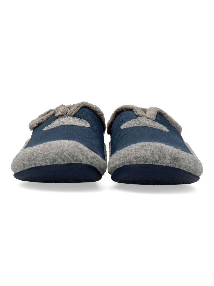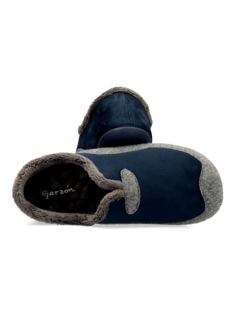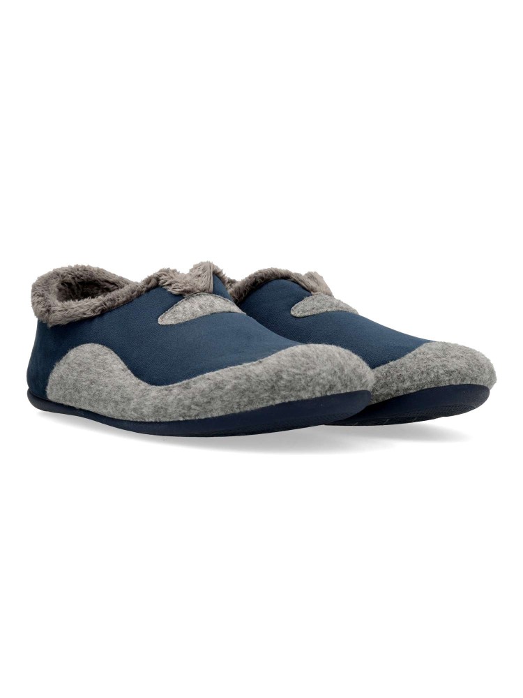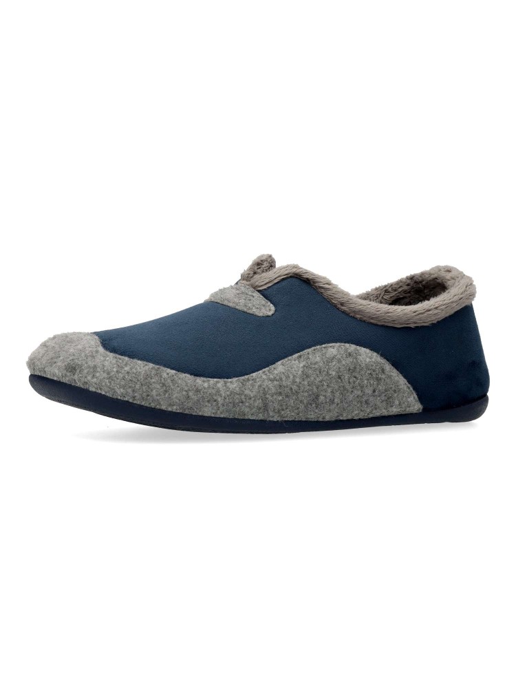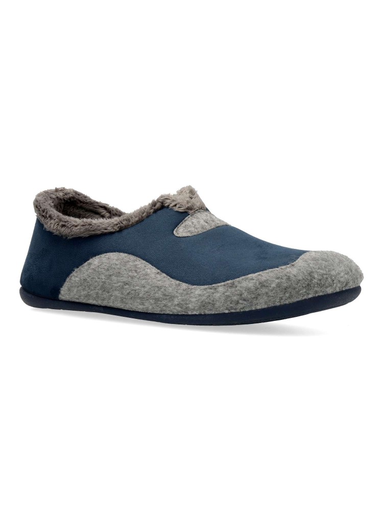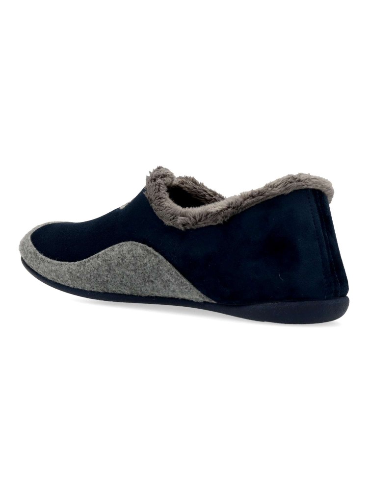 Zapatilla de casa cerrada, para hombre. Disponible en color marino-gris. Piso de goma flexible y antideslizante. Planta acolchada. Modelo ligero, cómodo y abrigado para los días más fríos. AITANA (Cdo. Chapa-Banda). Hecho en España.