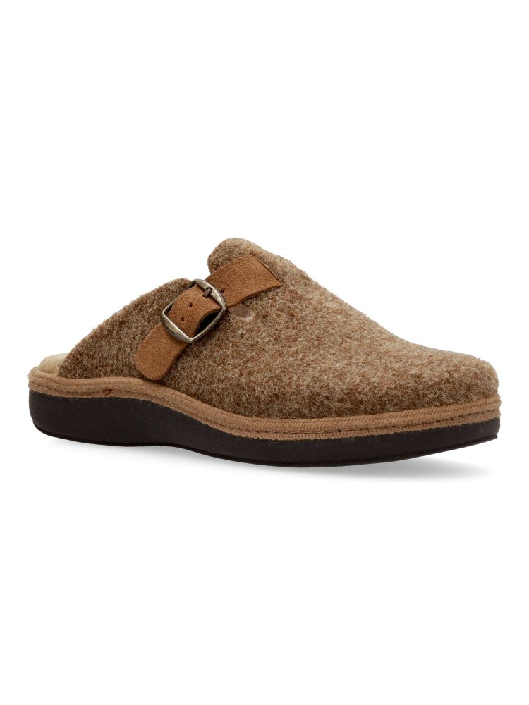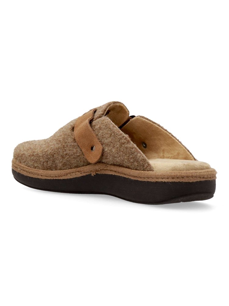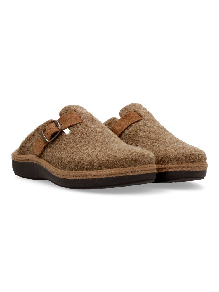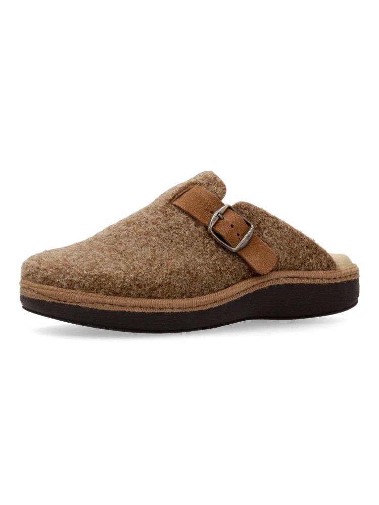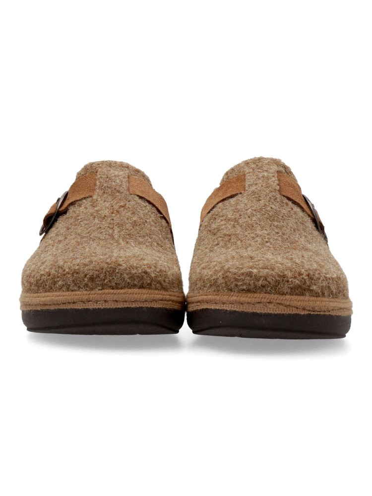 Zapatilla zueco hebilla regulable. Combinación ideal entre comodidad y calidad. Fabricada con fieltro y forrada con un interior aterciopelado que ofrece una sensación única de calidez. Plantilla extraíble memory foam lavable, para mayor higiene y confort.