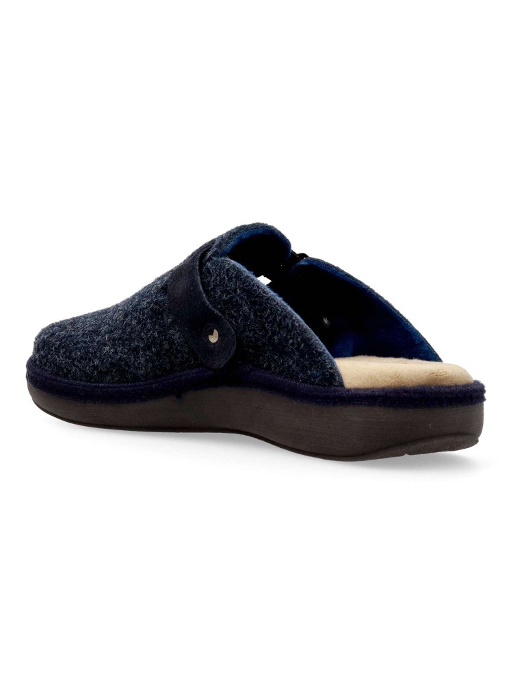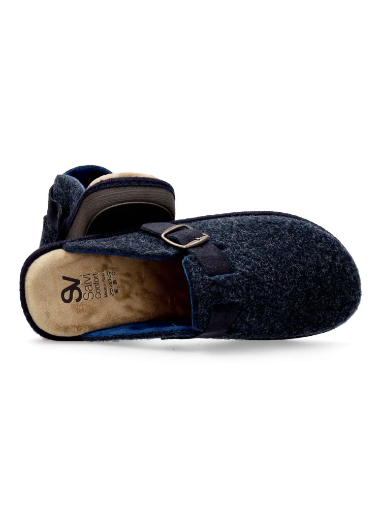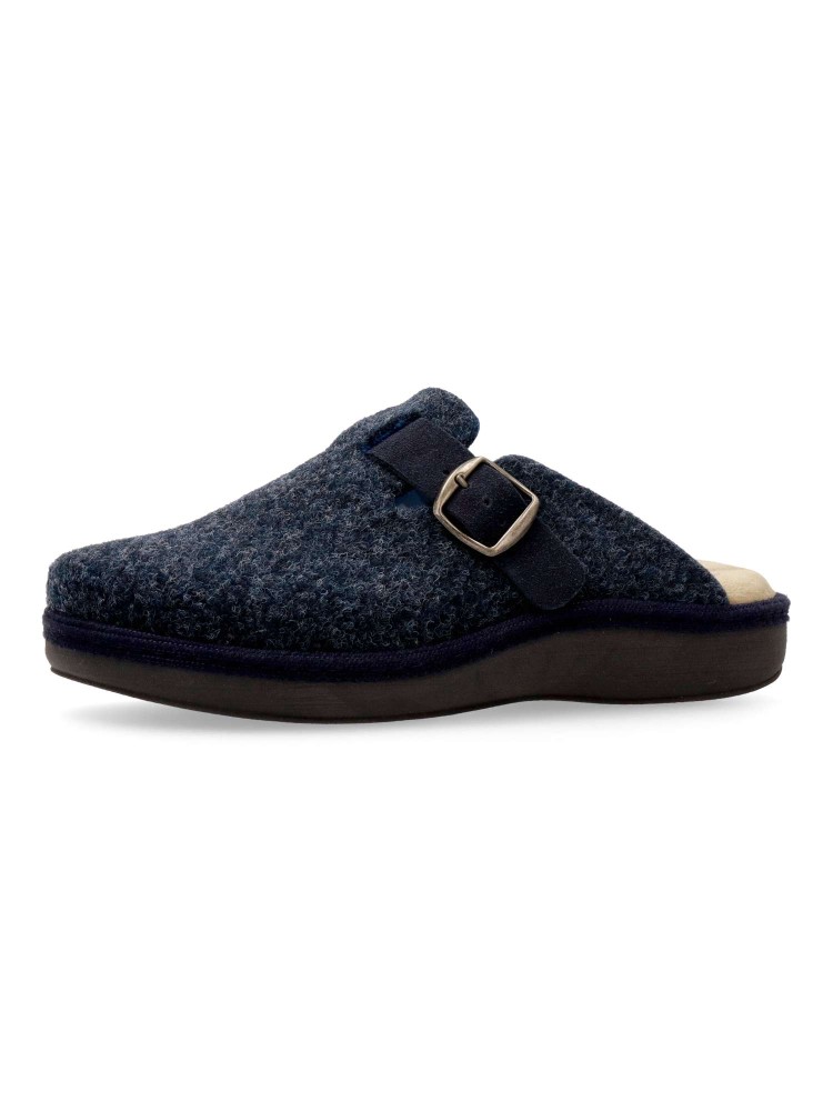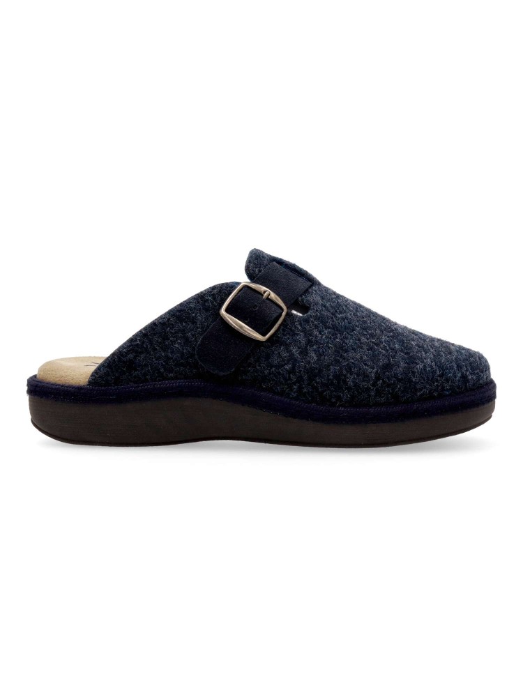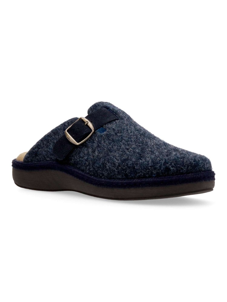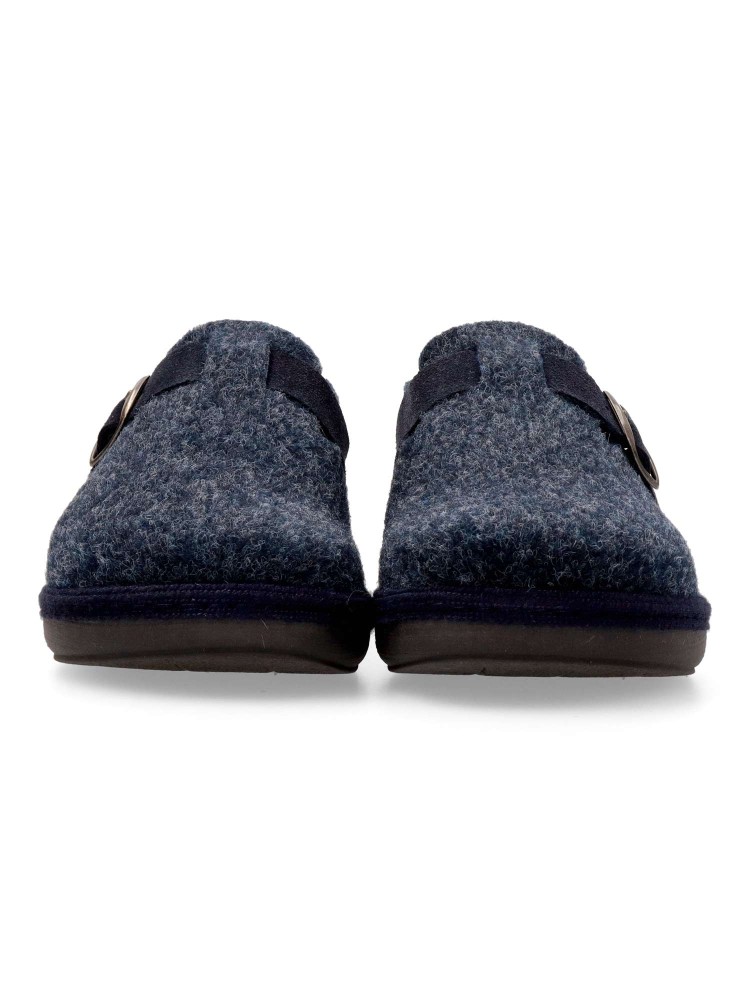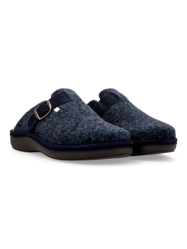 Zapatilla zueco hebilla regulable. Combinación ideal entre comodidad y calidad. Fabricada con fieltro y forrada con un interior aterciopelado que ofrece una sensación única de calidez. Plantilla extraíble memory foam lavable, para mayor higiene y confort.
