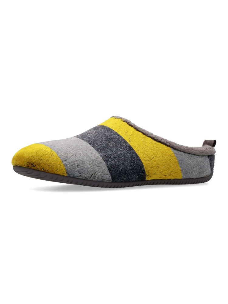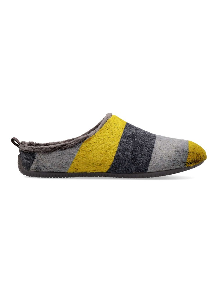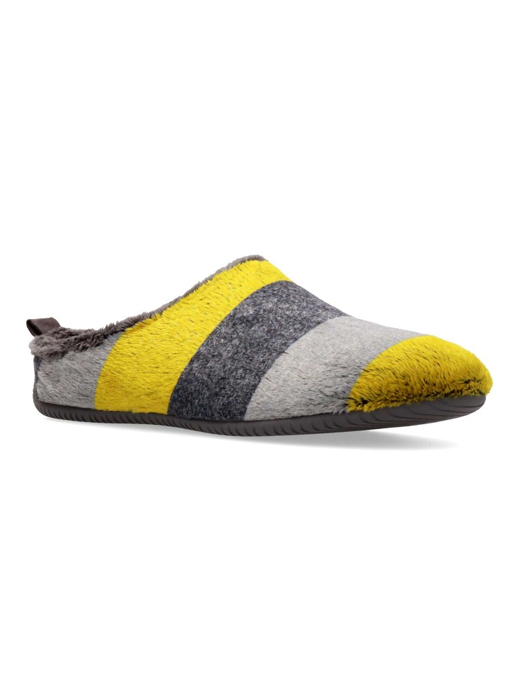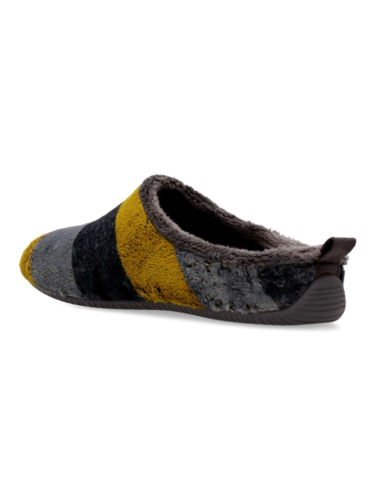Zapatilla de casa para hombre. Disponible en color gris-mostaza. Piso de goma flexible y antideslizante. Planta acolchada. Modelo ligero, cómodo y abrigado para los días más fríos. ICEBERG (Zco. Rib.-Tira talón). Hecho en España.