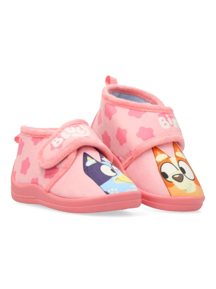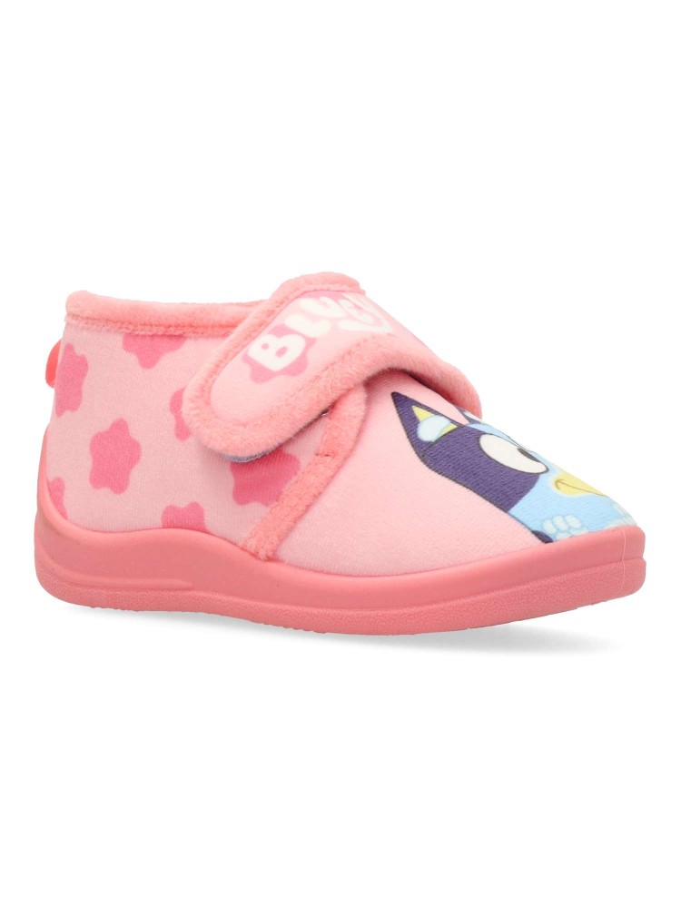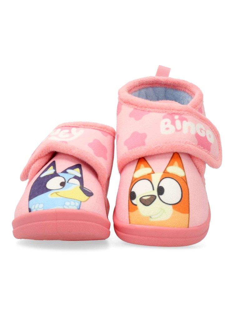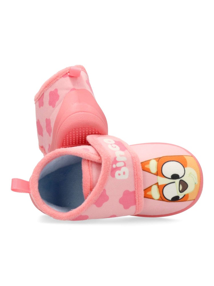 Zapatilla botita de casa para niña, Bluey. Cierre adherente. Suela de goma ligera y flexible. Color rosa. Modelo cómodo y abrigado para los días más fríos. Zapatillas de casa infantiles perfectas para los fans de Bluey.