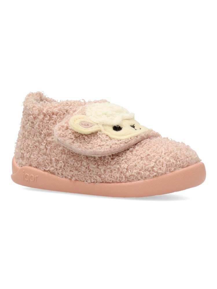 Zapatilla de casa para niña, con detalle de oveja. Concepto barefoot, cero drop, flexible y blandito, plantilla extraíble y cierre adherente para mayor ajuste y autonomía. Fabricada en un tejido súper blandito, calentito y suave.
