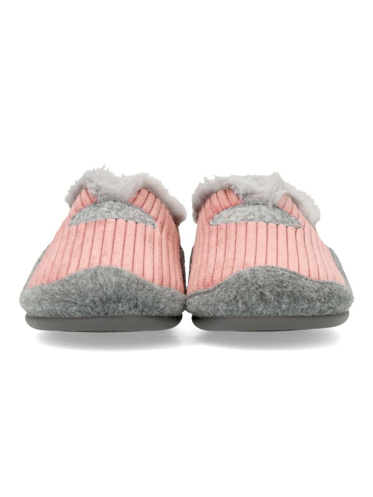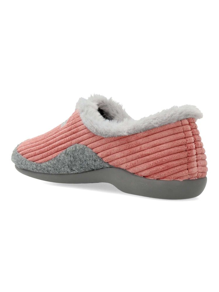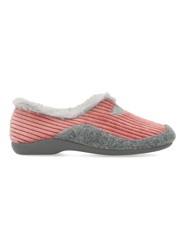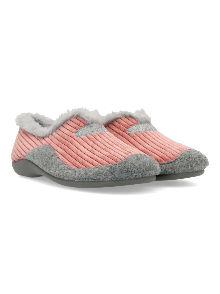 Zapatilla de casa para mujer. Modelo cerrado, disponible en color gris-teja. Piso de goma flexible y antideslizante. Plantilla acolchada. Modelo cómodo y abrigado para los días más fríos. FARM (CDO. CHAPA - BANDA). Hecho en España.