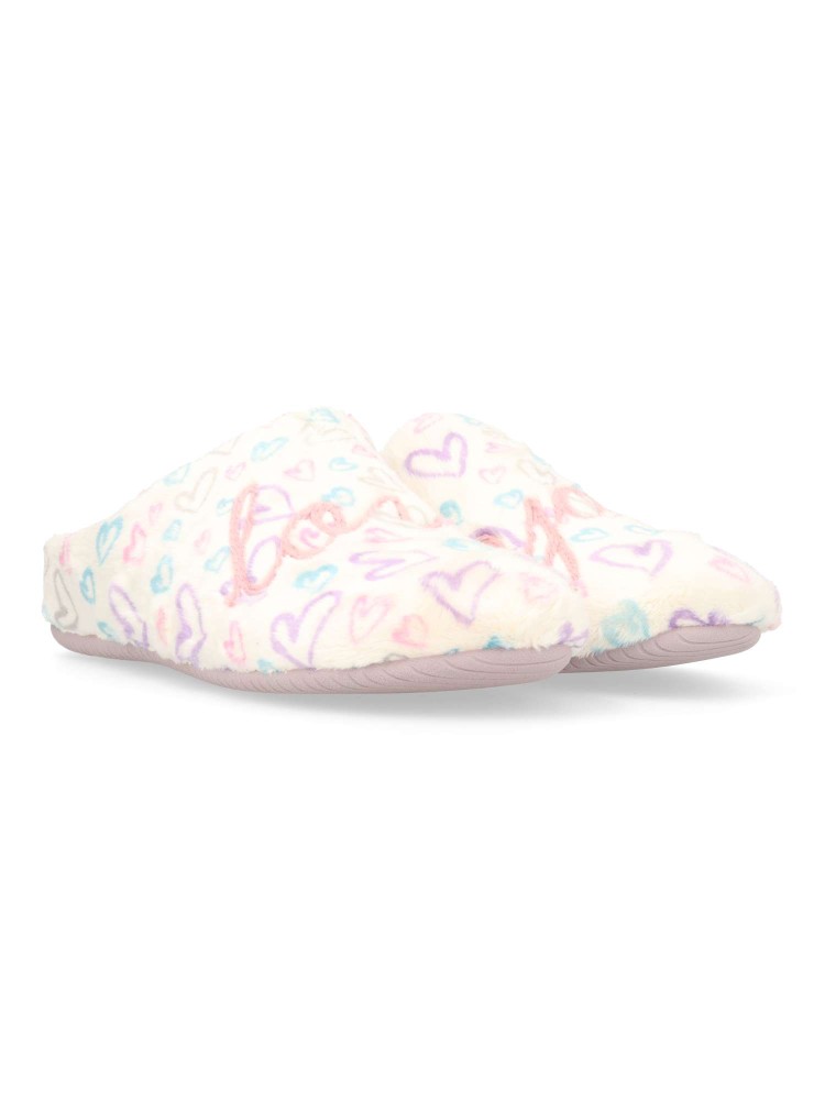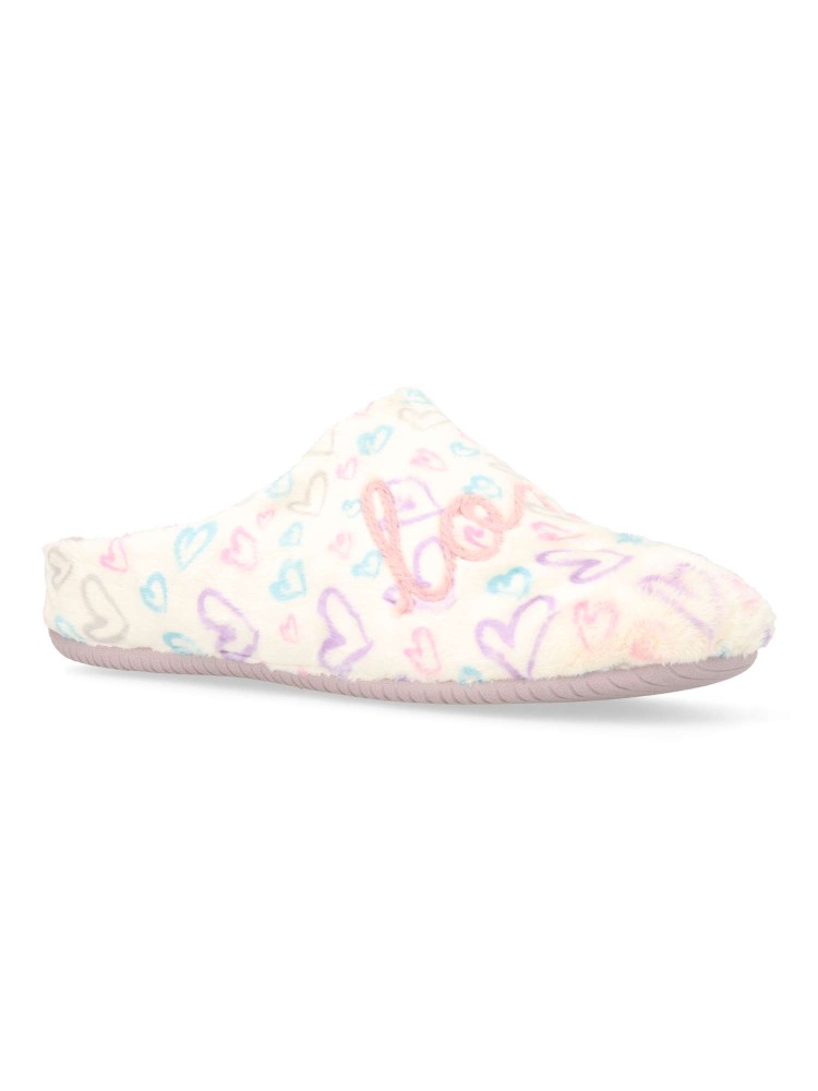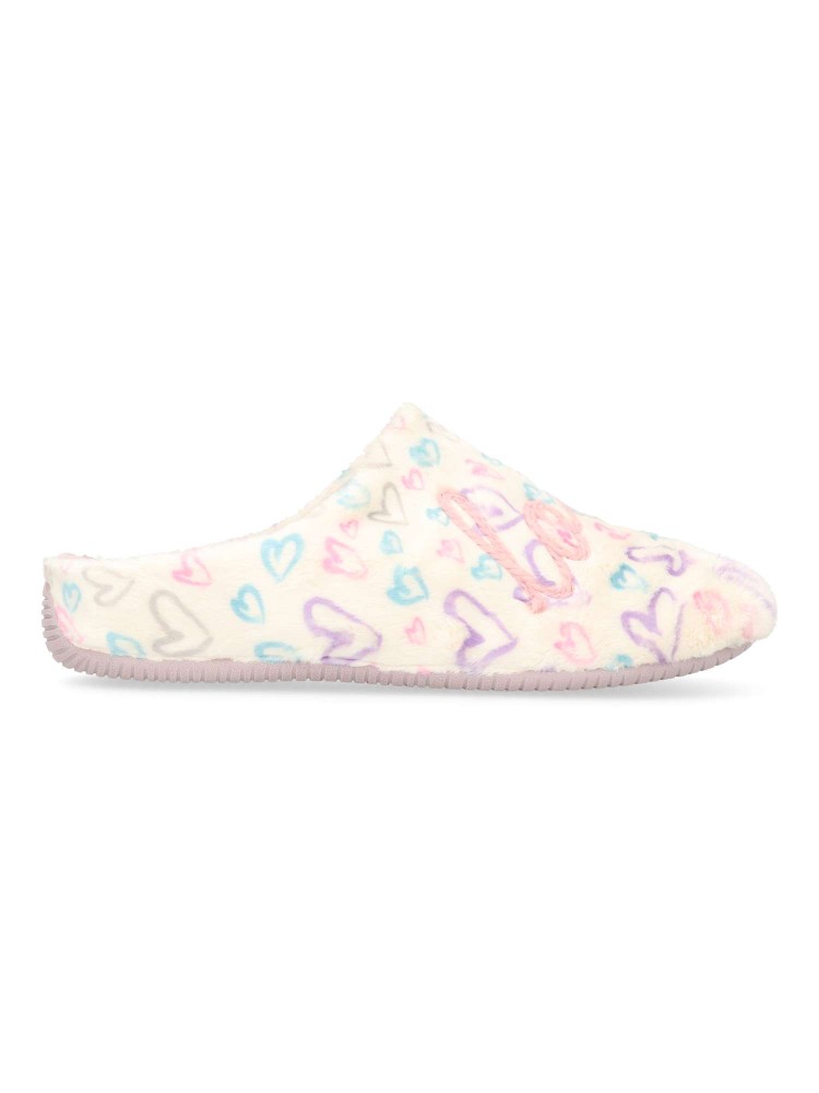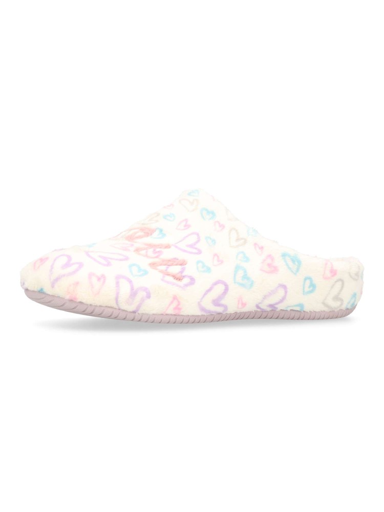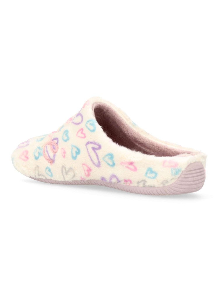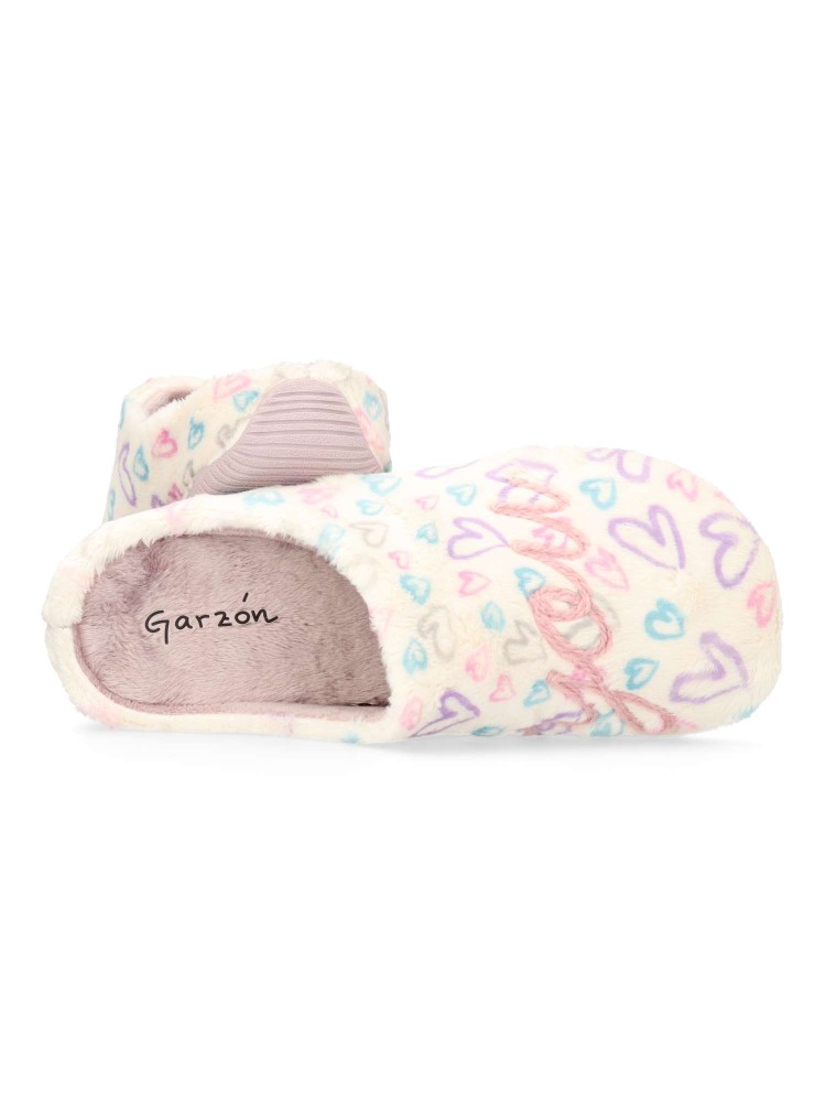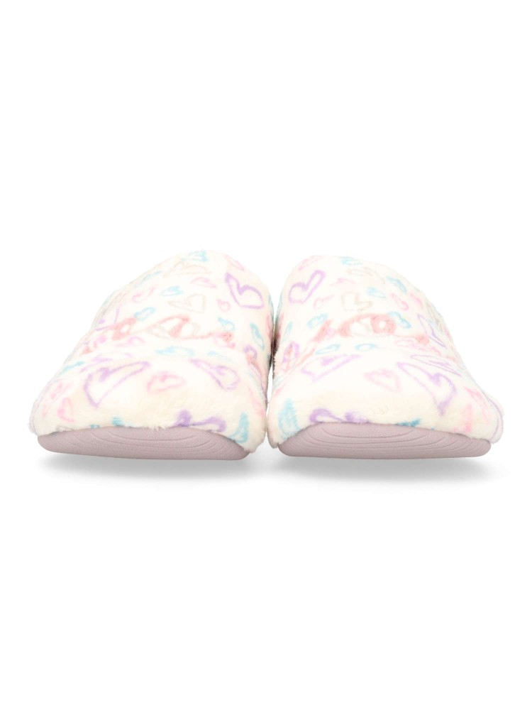 Zapatilla de casa para mujer. Disponible en color arena-purpura. Planta acolchada. Piso de goma antideslizante. Modelo cómodo, suave y abrigado para los días más fríos. MONTLIS (S. LOVE/YOU). Hecho en España.