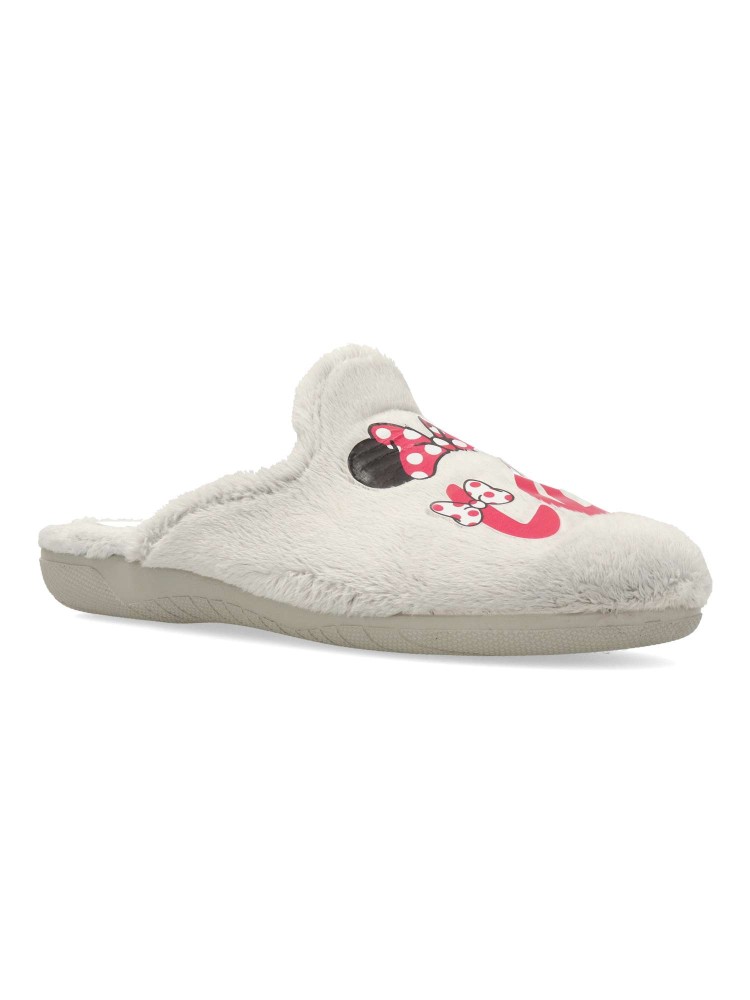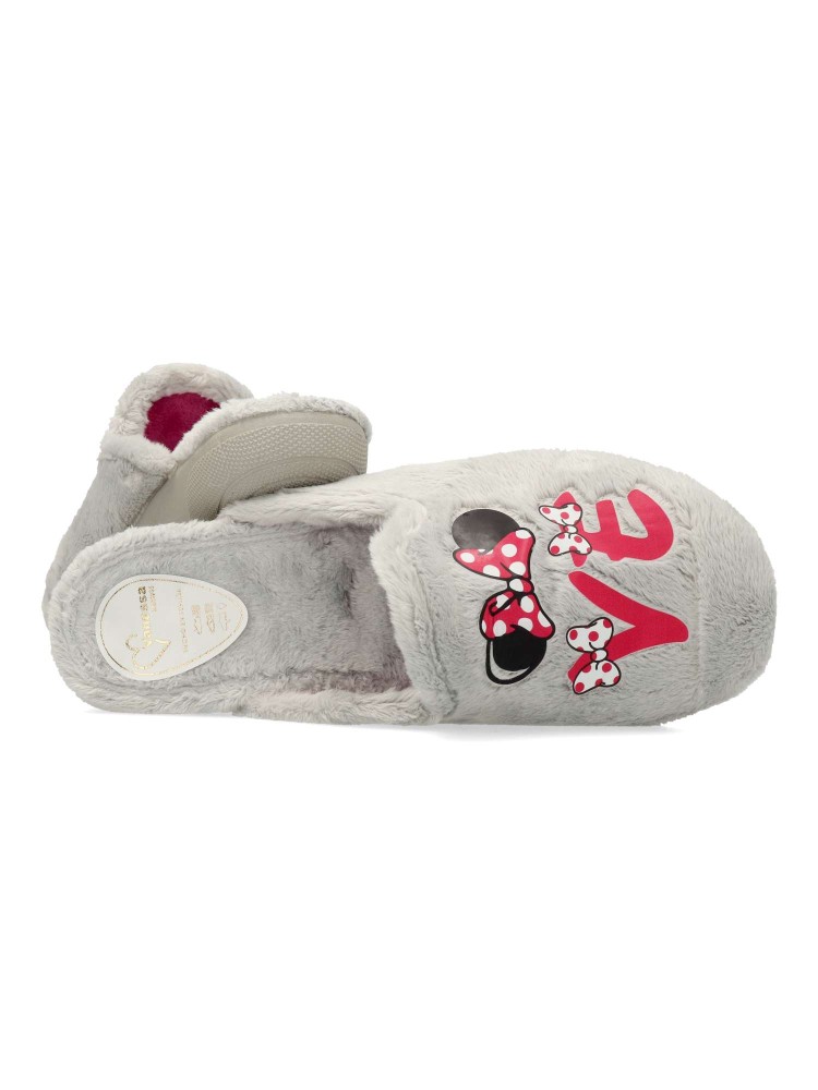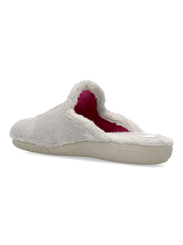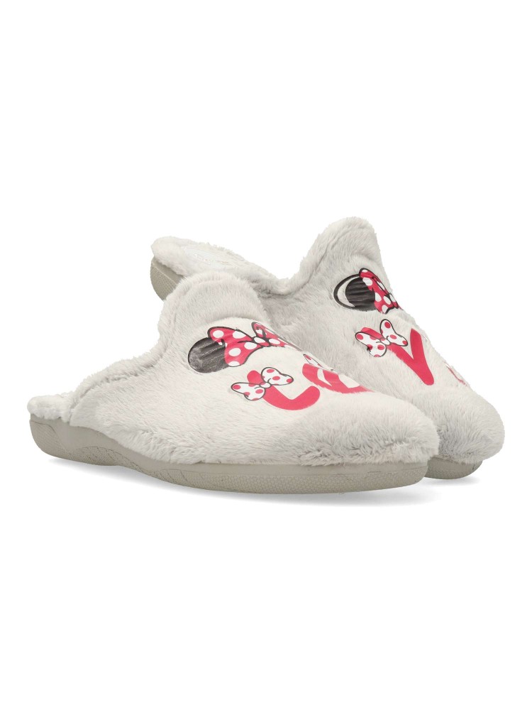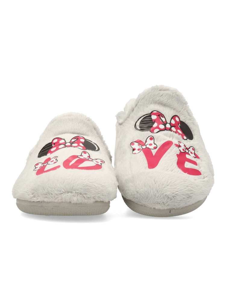 Zapatilla de casa para mujer. Fabricada en textil con suela de goma ligera y flexible. Plantilla acolchada. Interior y exterior de suave pelo sintético. Dibujo estampado decorativo "LOVE". Modelo cómodo y abrigado para los días más fríos. Hecho en España.