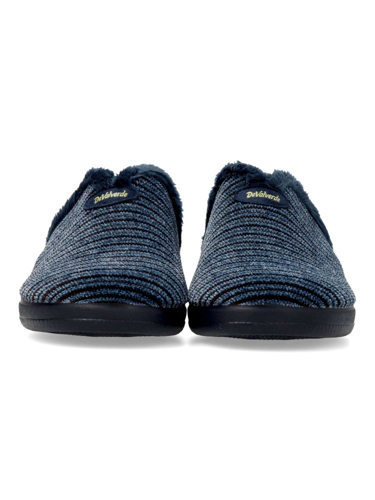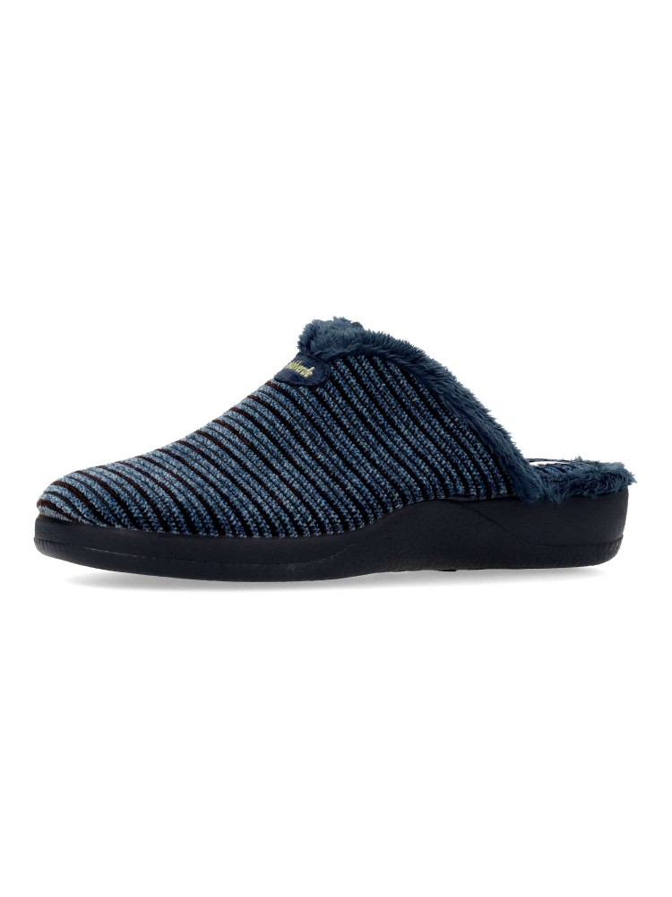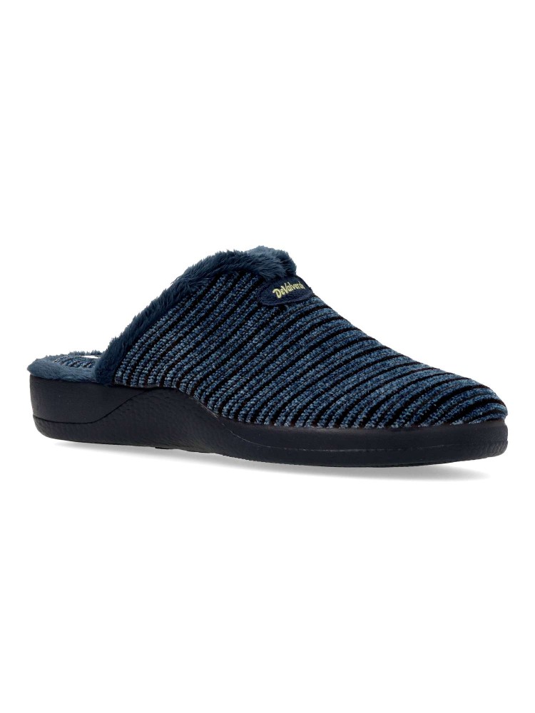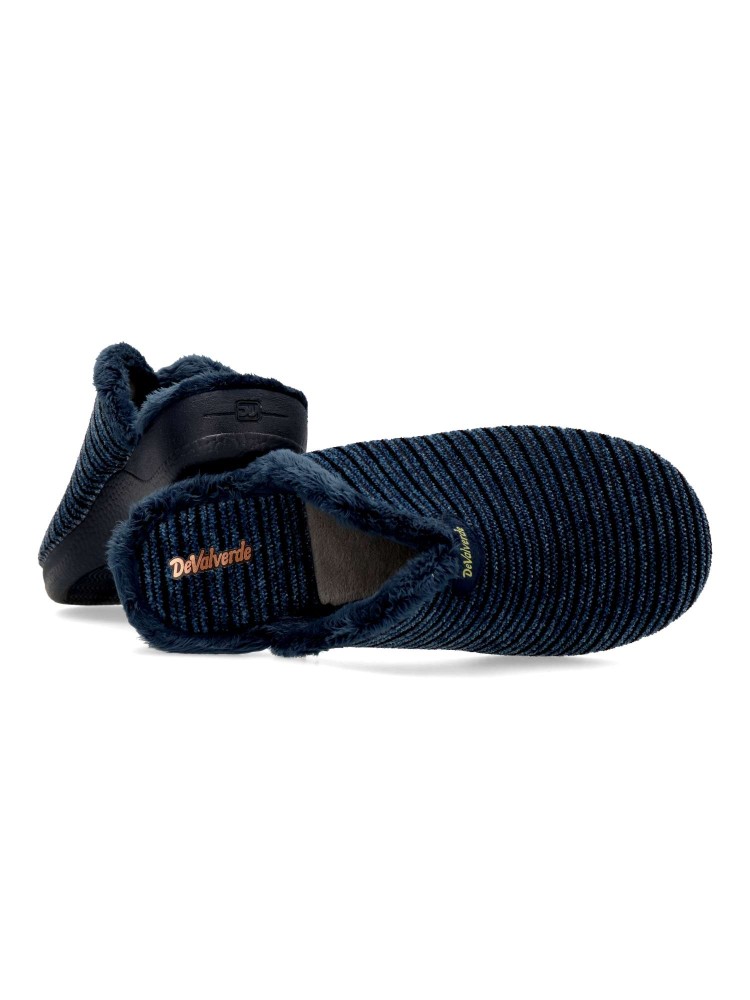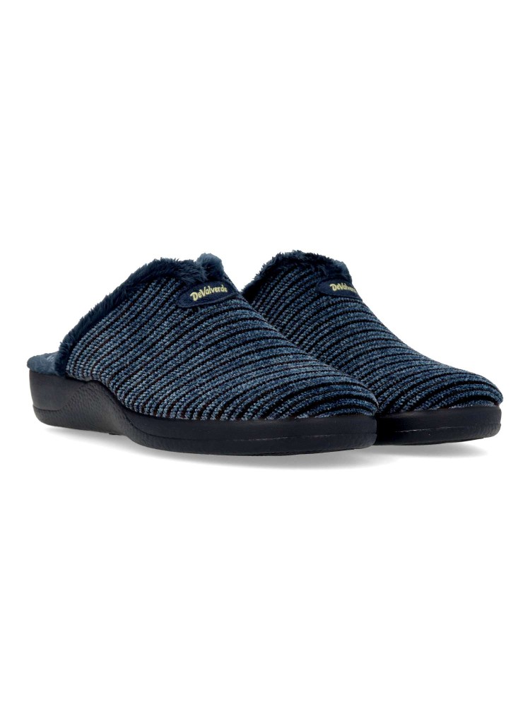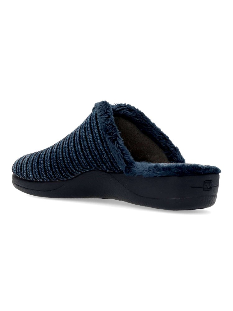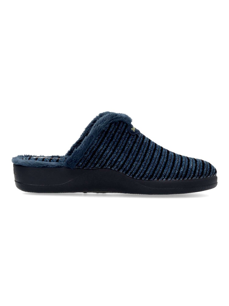 Zapatilla de casa, para mujer. Chinelas relajantes, termoestables, flexibles, lavables y antibacterias. Suela de goma antideslizante. Planta acolchada. Modelo cómodo, que aporta suavidad y calorcito, para los días más fríos. Color marino. Hecho en España.