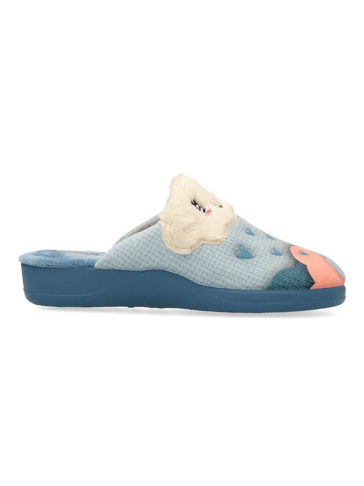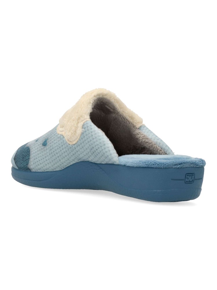 Zapatilla de casa, para mujer. Chinelas relajantes, termoestables, flexibles, lavables y antibacterias. Suela de goma antideslizante. Planta acolchada. Modelo cómodo, que aporta suavidad y calorcito, para los días más fríos. Color ducado. Hecho en España.