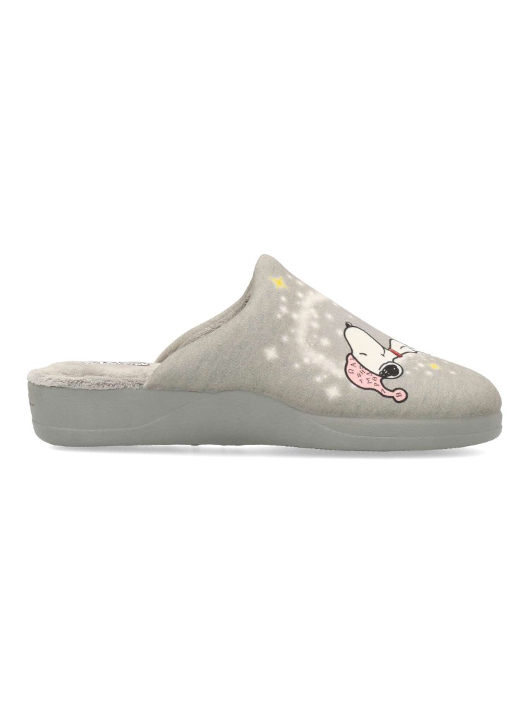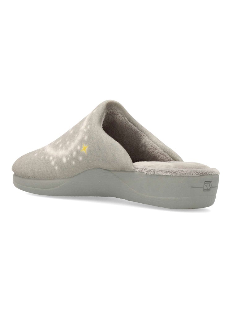 Zapatilla de casa, para mujer. Chinelas relajantes, termoestables, flexibles, lavables y antibacterias. Suela de goma antideslizante. Planta acolchada. Modelo cómodo, que aporta suavidad y calorcito, para los días más fríos. Color gris. Hecho en España.