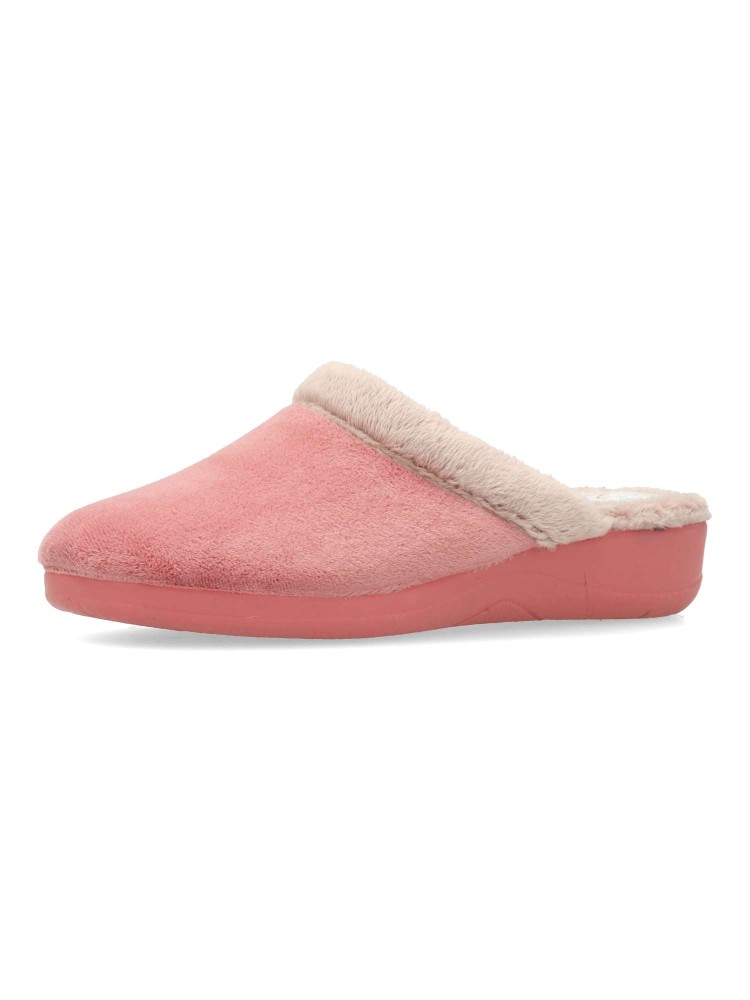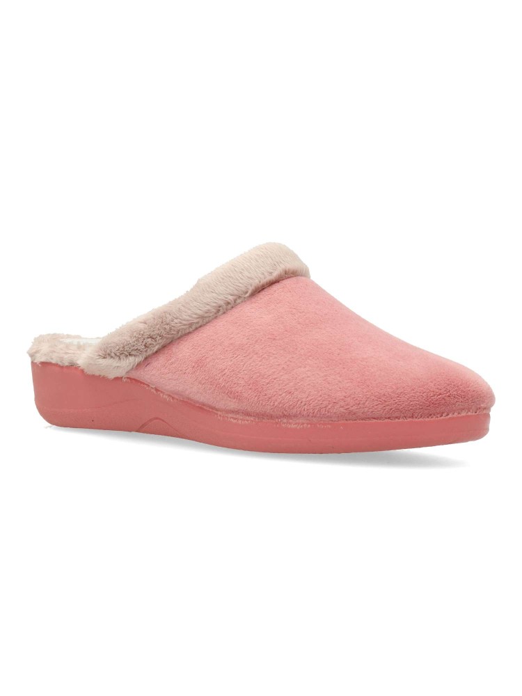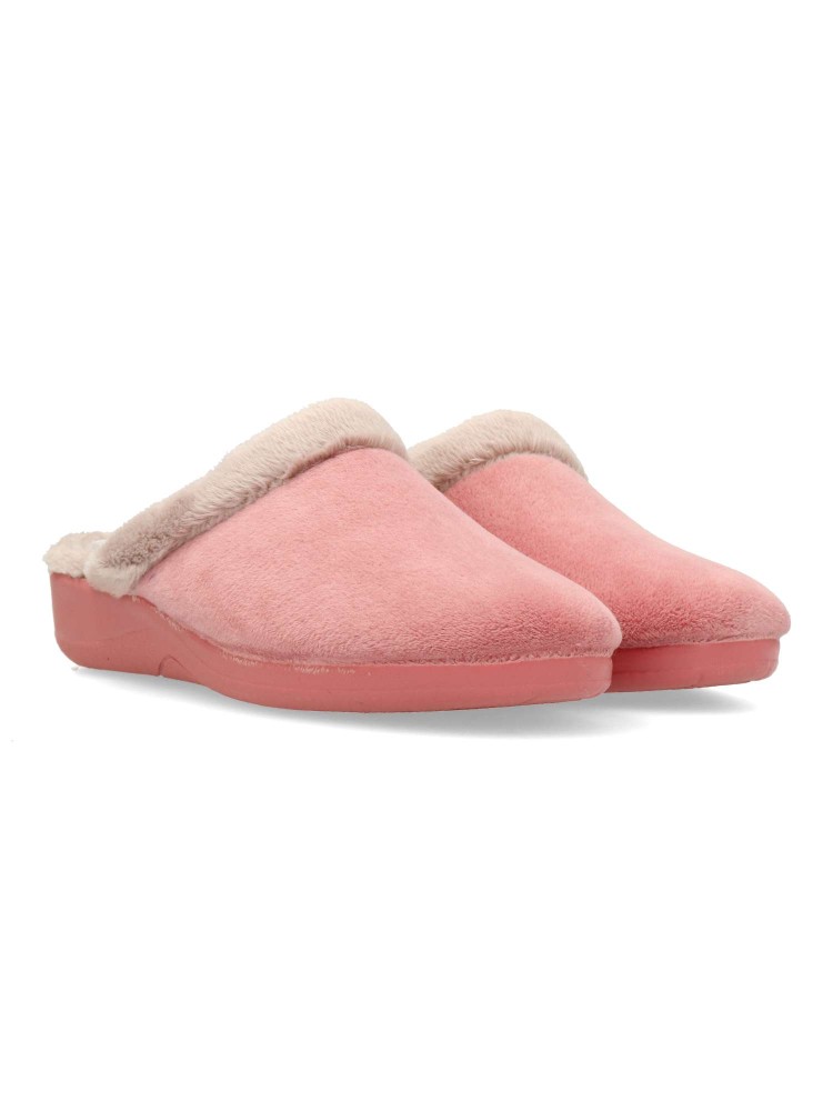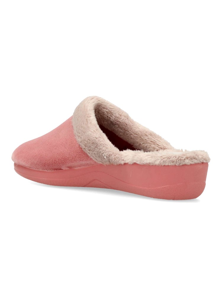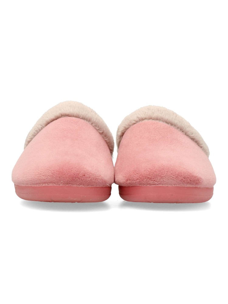 Zapatilla de casa para mujer. Color maquillaje. Fabricada en textil con suela de goma ligera y flexible. Plantilla acolchada. Forro interior de pelo sintético suave. Modelo cómodo y abrigado para los días más fríos. Hecho en España.