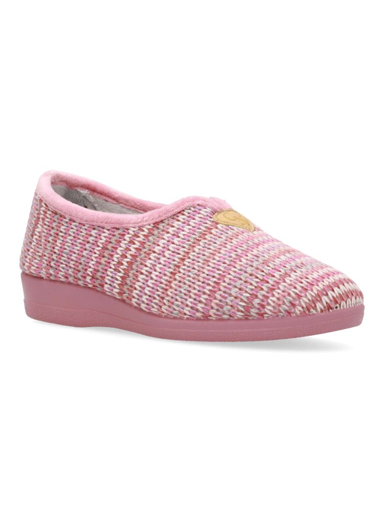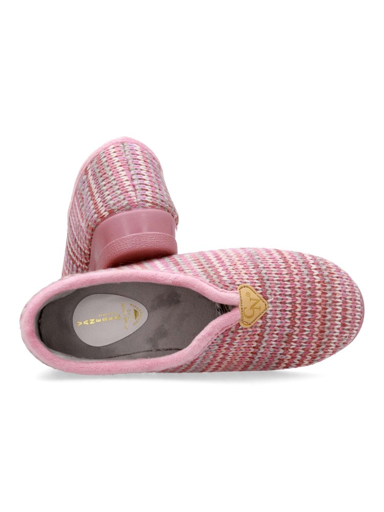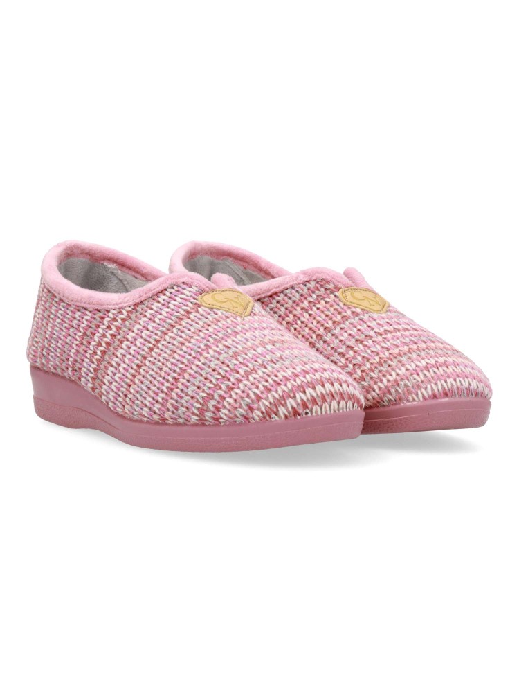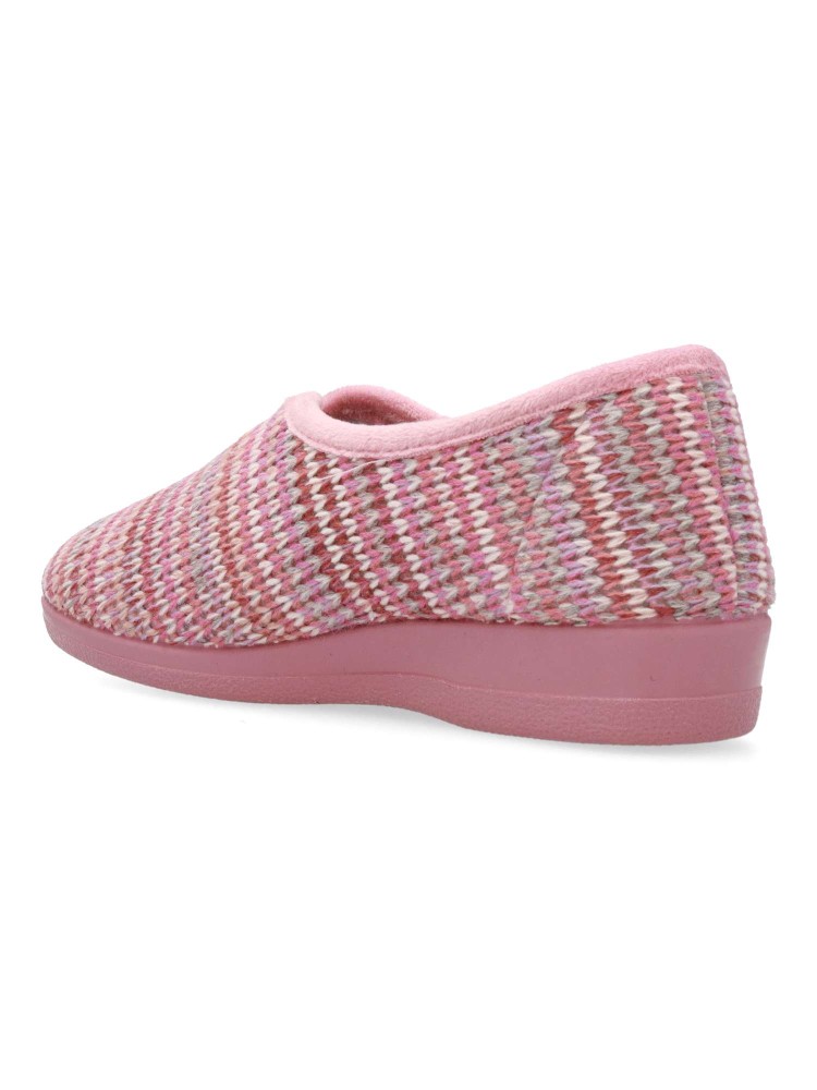 Zapatilla de casa para mujer. Color rosa. Fabricada en textil lana suave, con suela de caucho antideslizante, flexible y ligera. Plantilla acolchada. Zapatilla cerrada que te ofrece confort y te abriga en los días más fríos. Hecho en España.