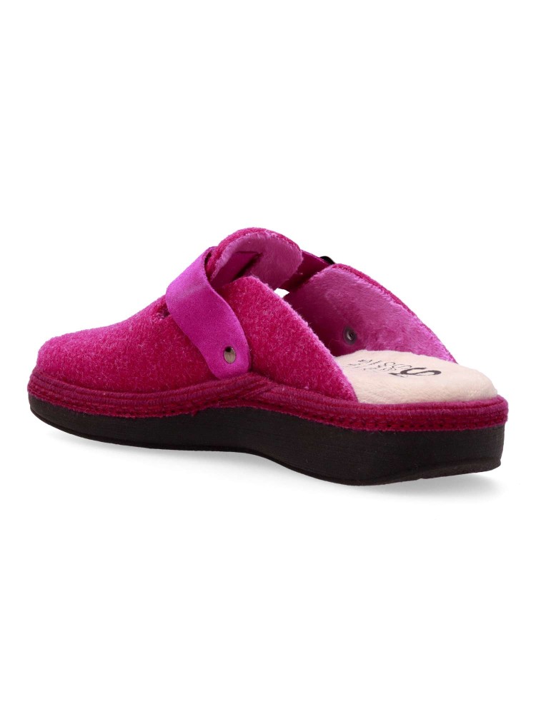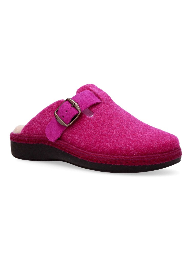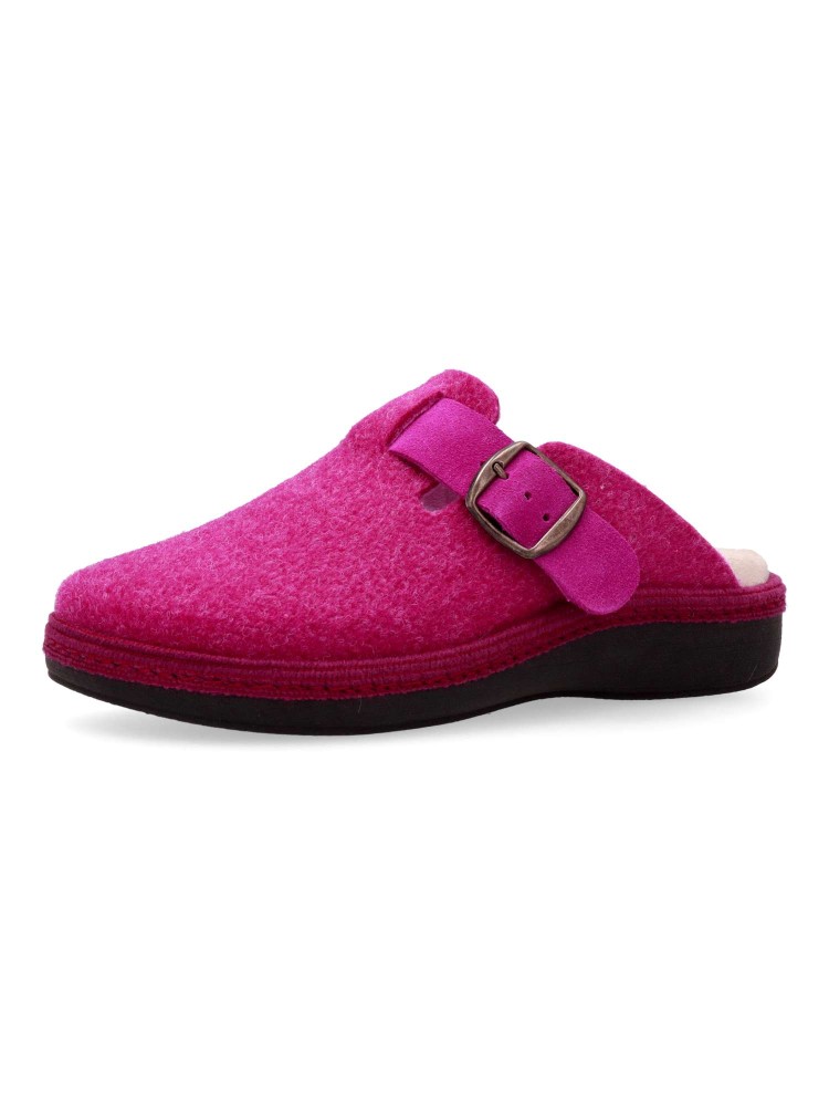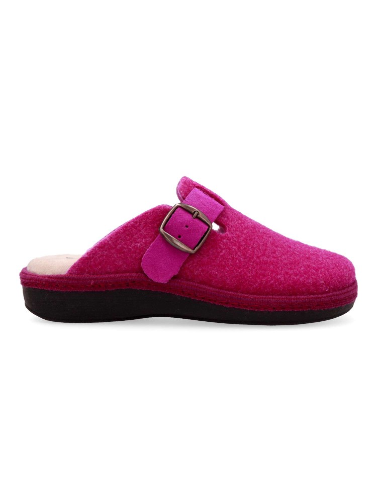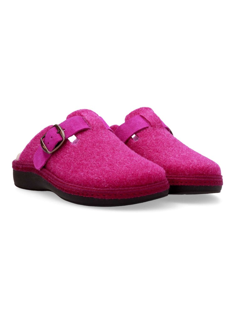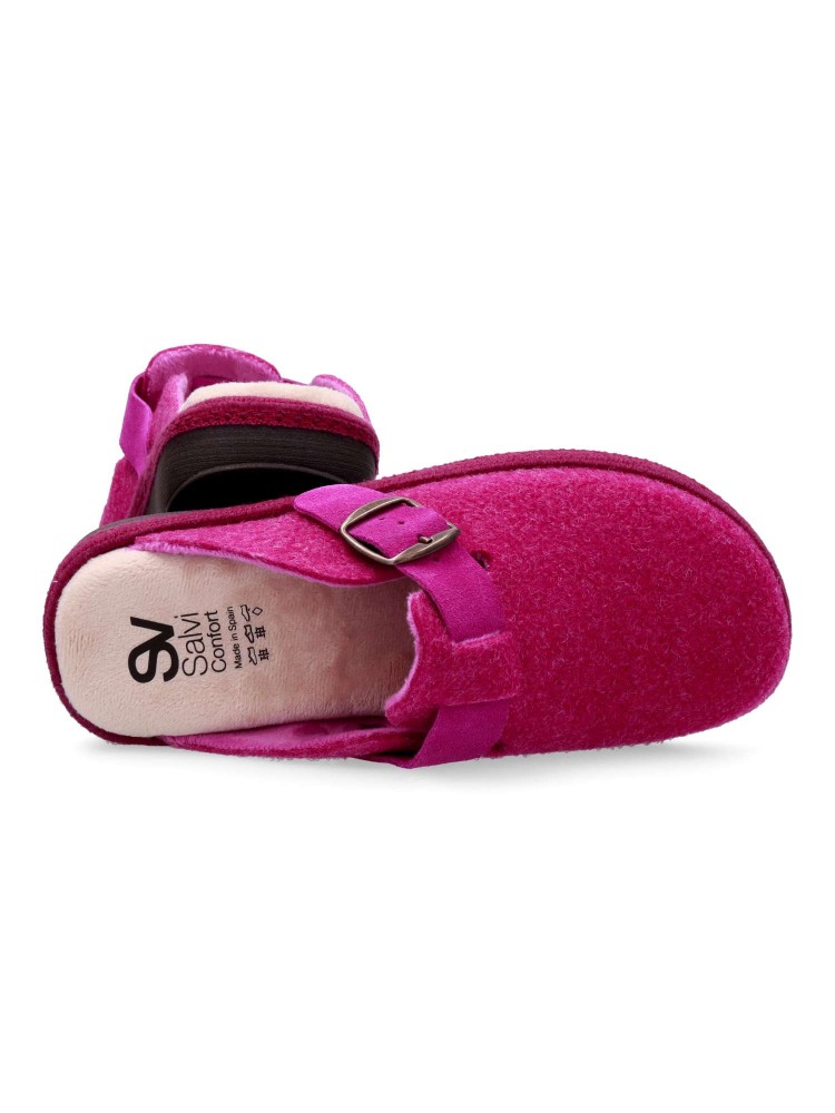 Zapatilla zueco hebilla regulable. Combinación ideal entre comodidad y calidad. Fabricada con fieltro y forrada con un interior aterciopelado que ofrece una sensación única de calidez. Plantilla extraíble memory foam lavable, para mayor higiene y confort.