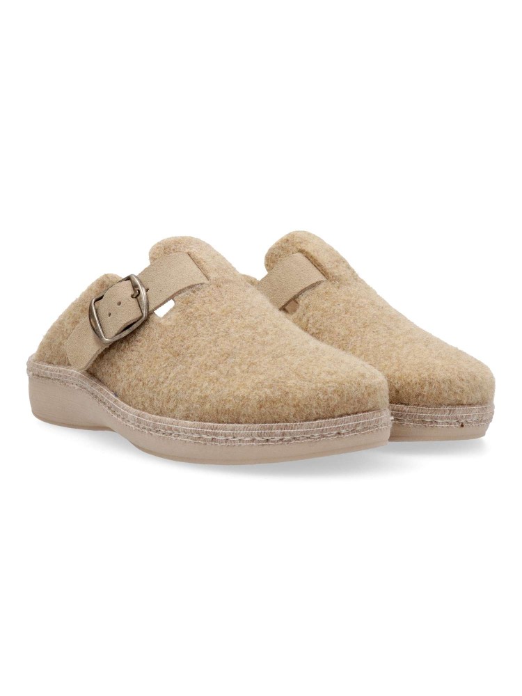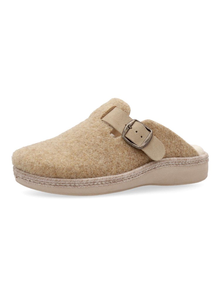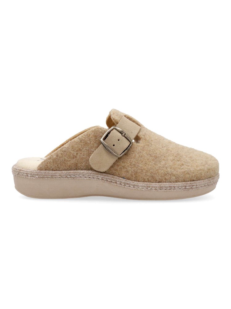 Zapatilla zueco hebilla regulable. Combinación ideal entre comodidad y calidad. Fabricada con fieltro y forrada con un interior aterciopelado que ofrece una sensación única de calidez. Plantilla extraíble memory foam lavable, para mayor higiene y confort.
