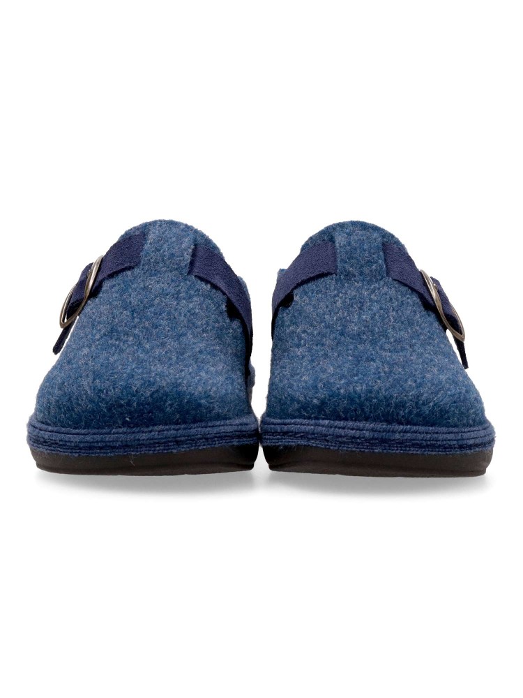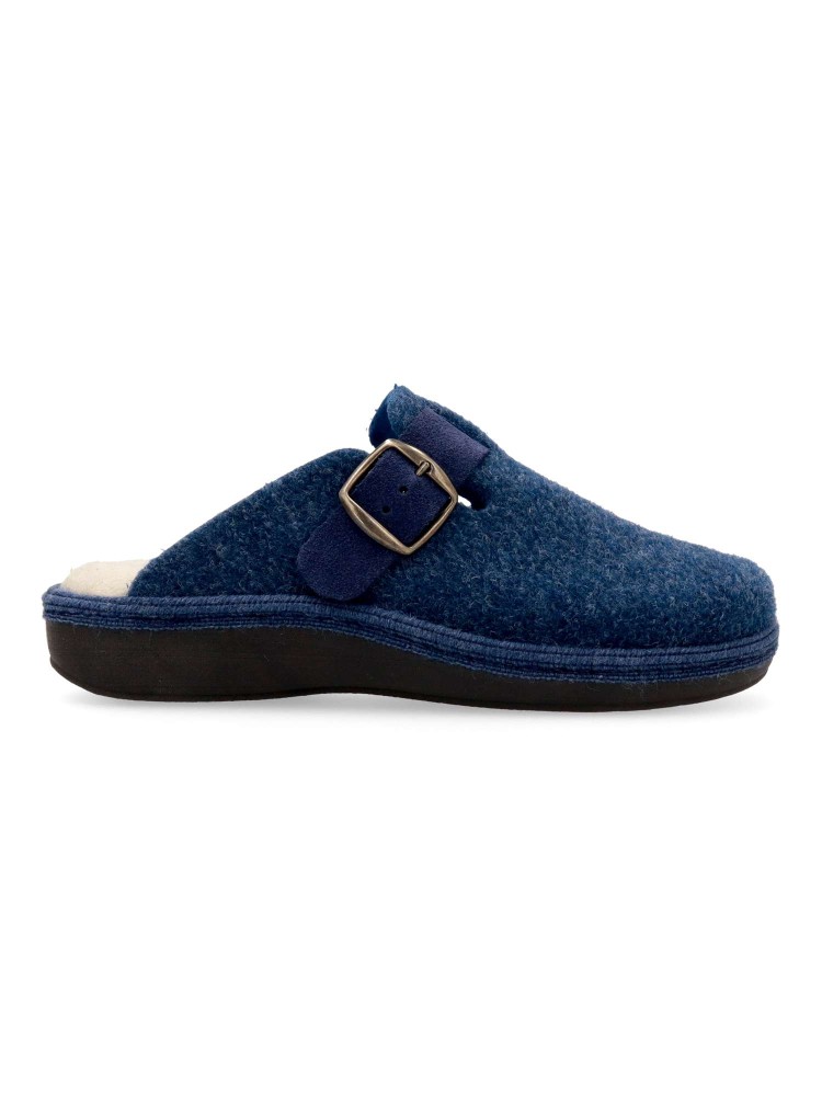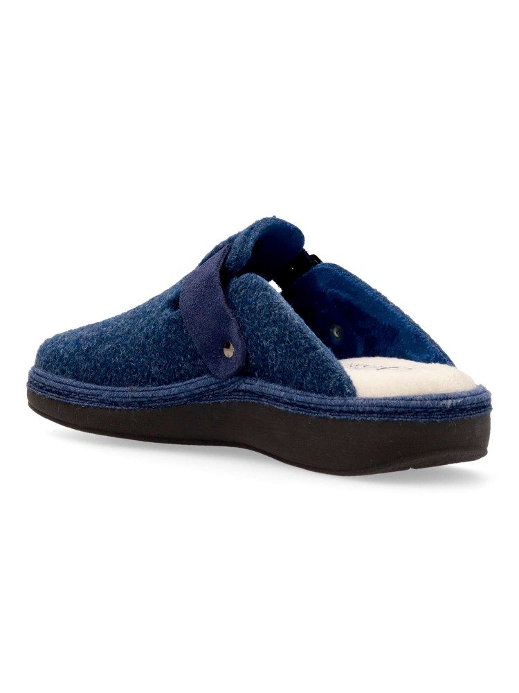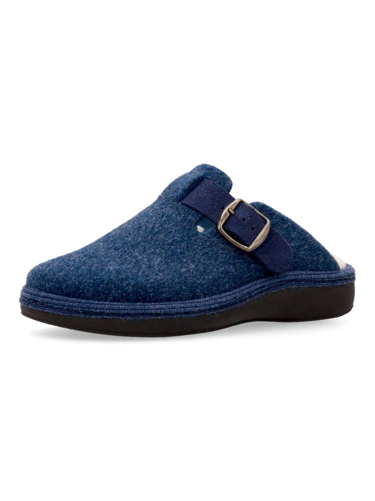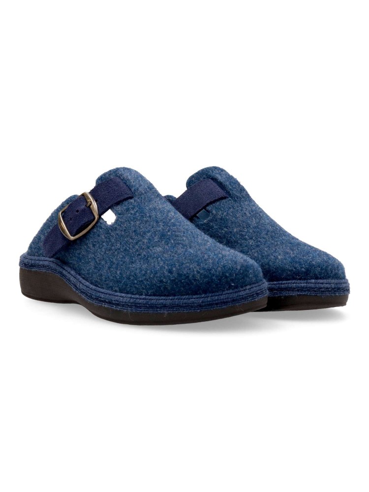 Zapatilla zueco hebilla regulable. Combinación ideal entre comodidad y calidad. Fabricada con fieltro y forrada con un interior aterciopelado que ofrece una sensación única de calidez. Plantilla extraíble memory foam lavable, para mayor higiene y confort.