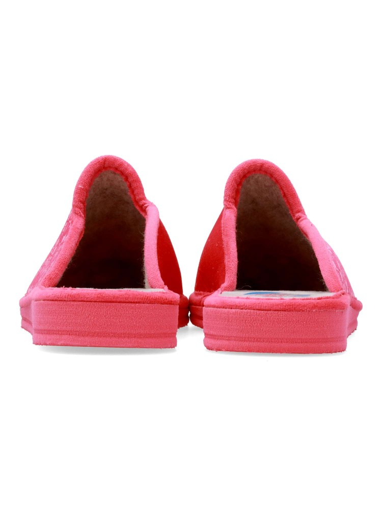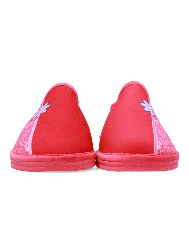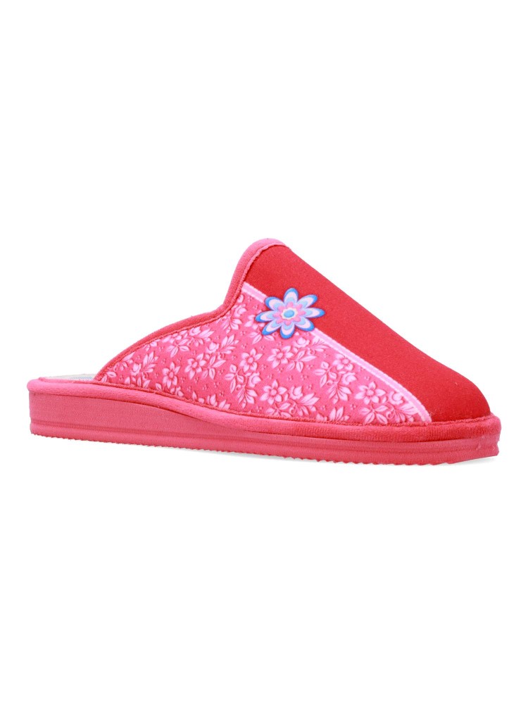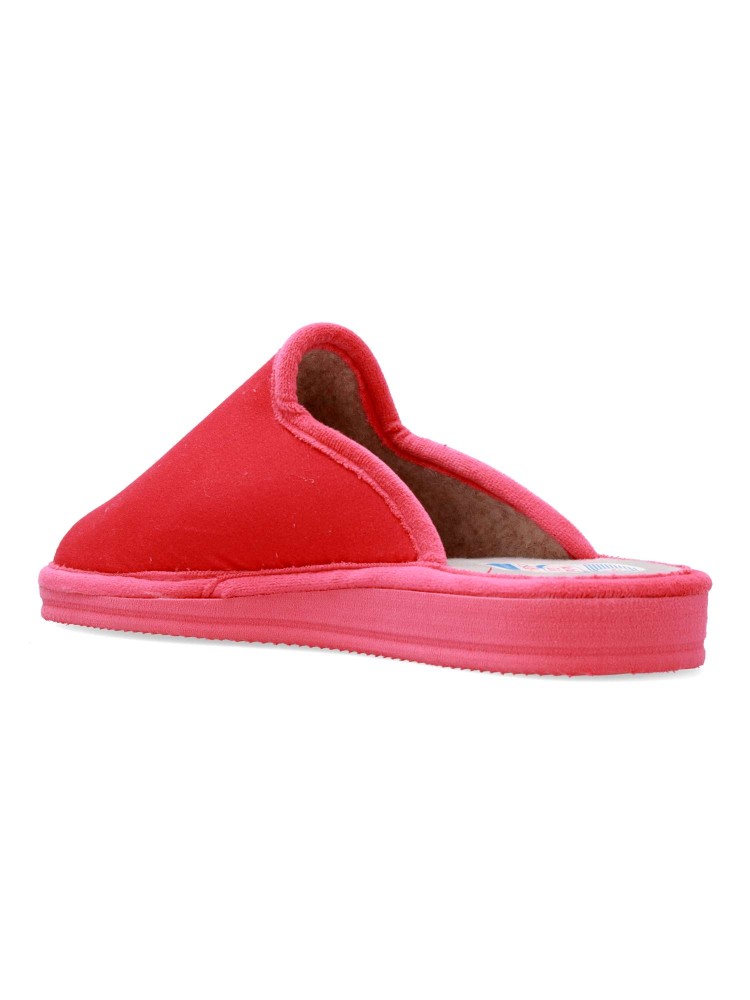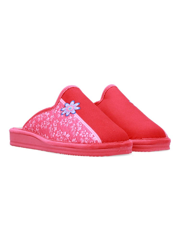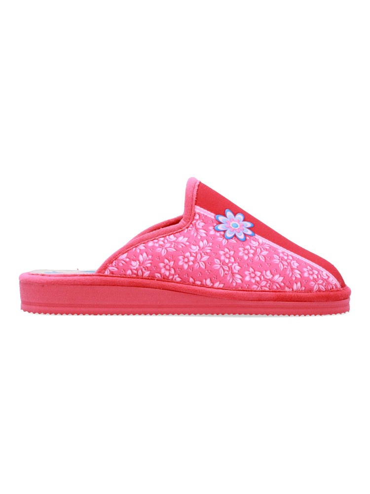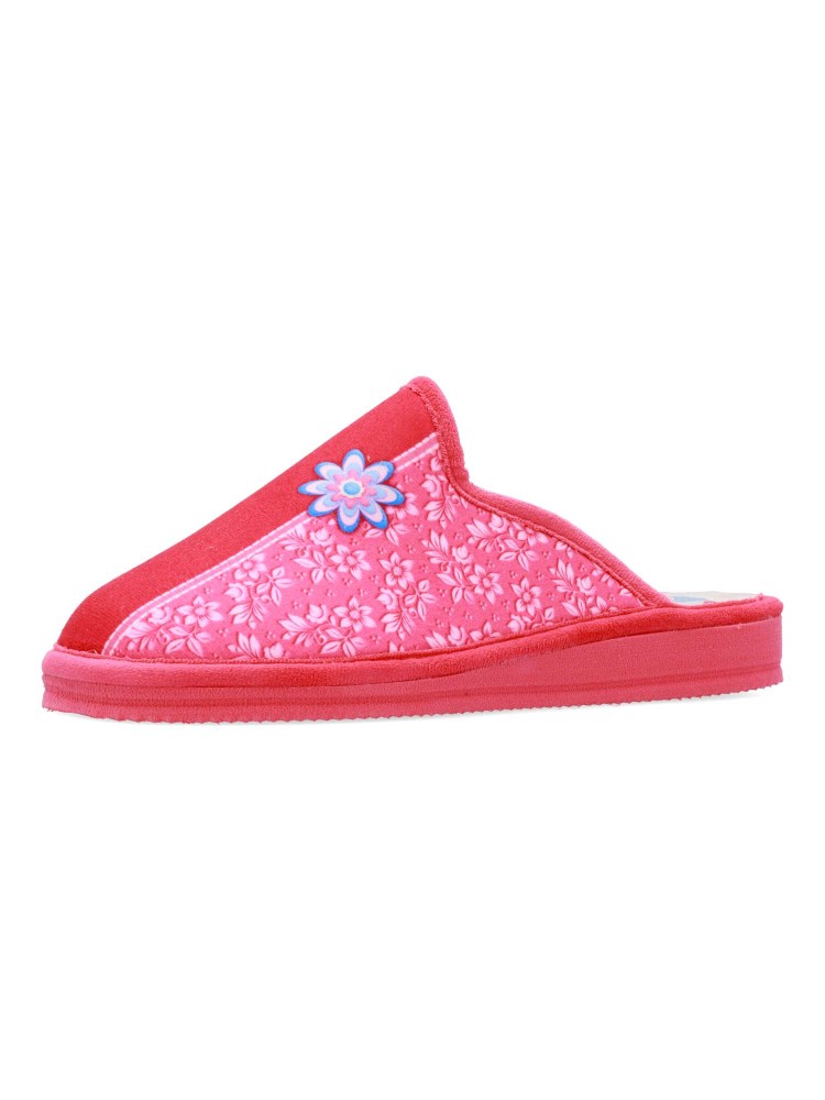 Zapatilla de casa para mujer. Disponible en color fucsia. Fabricada en textil suave, con suela de goma EVA (especial parquet). Detalle estampado flores. Modelo ligero, cómodo y abrigado para los días más fríos. Hecho en España.