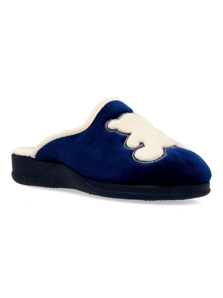 Zapatilla de casa para mujer. Fabricada en textil suave, con suela de caucho antideslizante, flexible y ligera. Plantilla acolchada. Altura 3 cm. Zapatilla que te ofrece confort y te abriga en los días más fríos. Hecho en España.