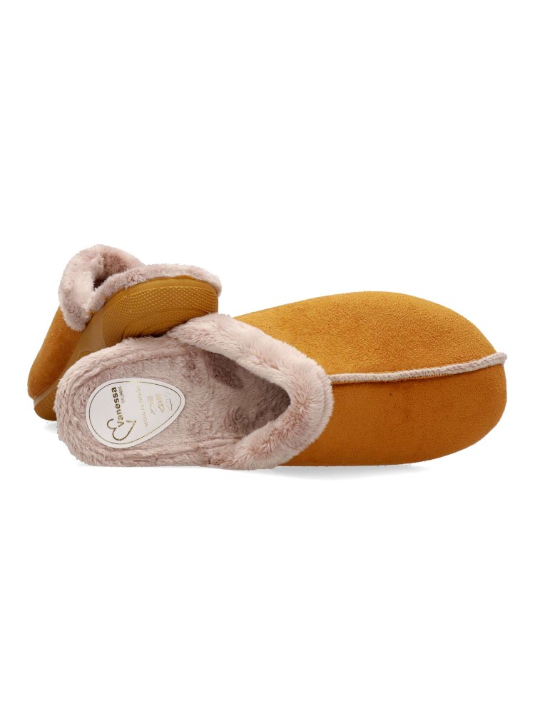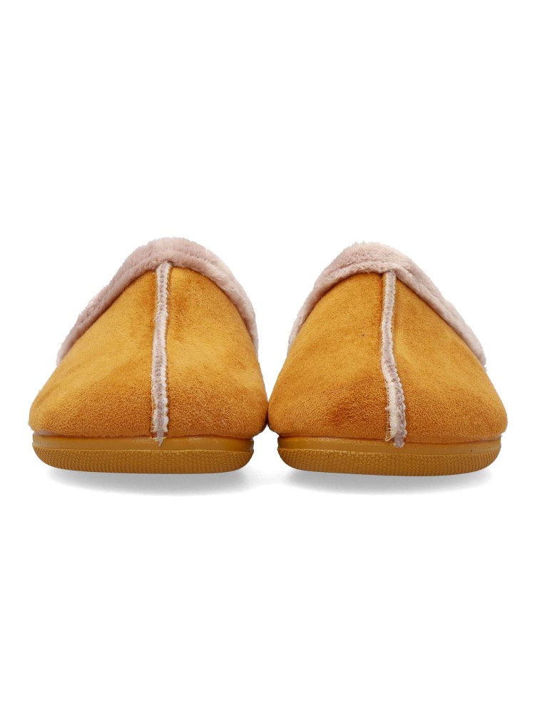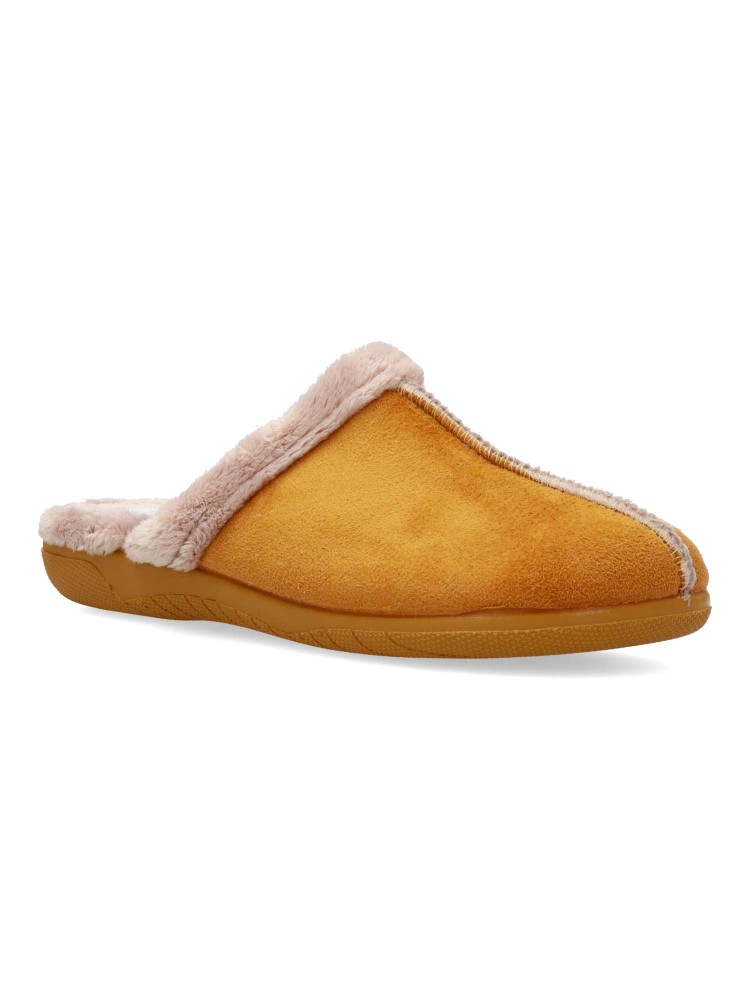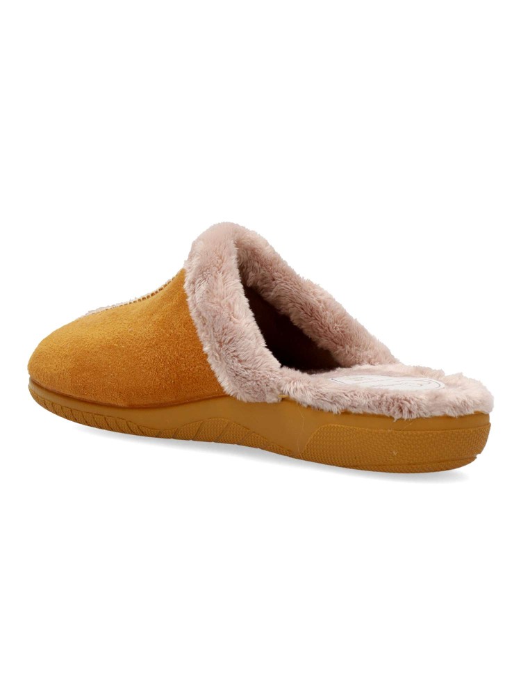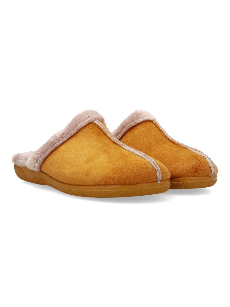 Zapatilla de casa para mujer. Fabricada en textil con suela de goma ligera y flexible. Color camel. Plantilla acolchada. Interior y exterior de suave pelo sintético. Agradable sensación de comodidad y calidez para los días más fríos. Hecho en España.