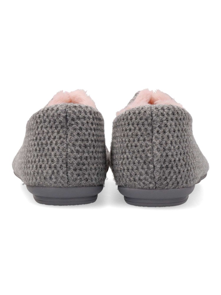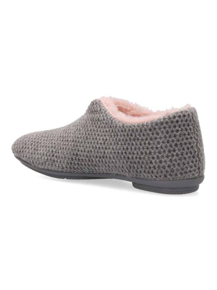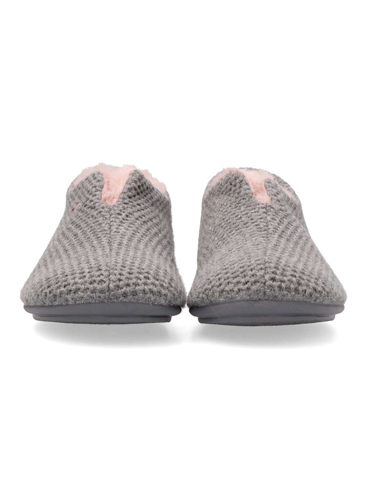 Zapatilla de casa para mujer. Modelo cerrado, disponible en color gris-rosa. Piso de goma flexible y antideslizante. Plantilla acolchada y extraíble. Modelo cómodo y abrigado para los días más fríos. ETNA (B. LOGO G LAT.). Hecho en España.