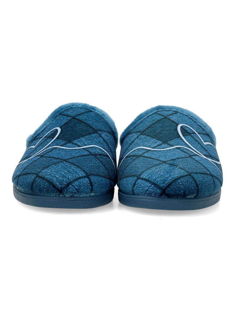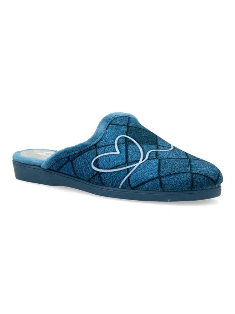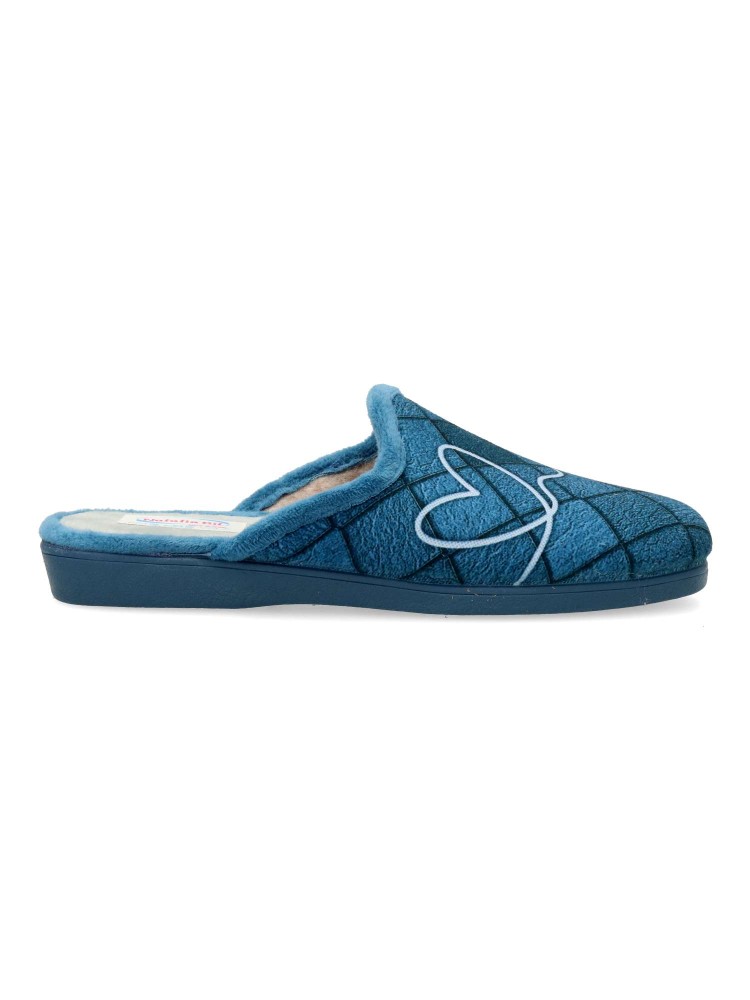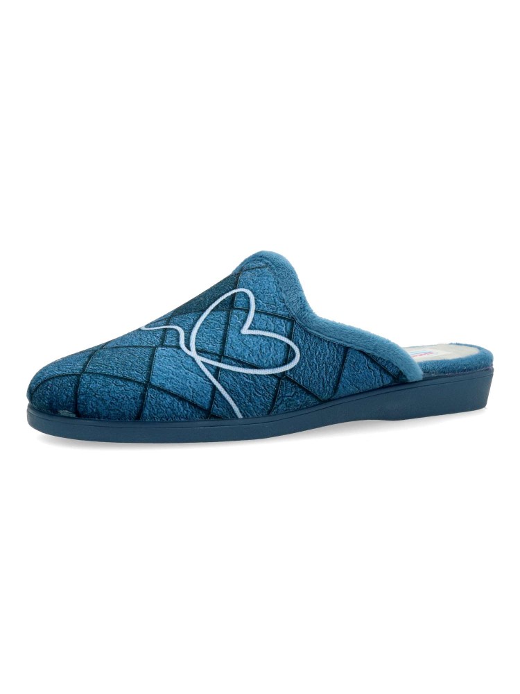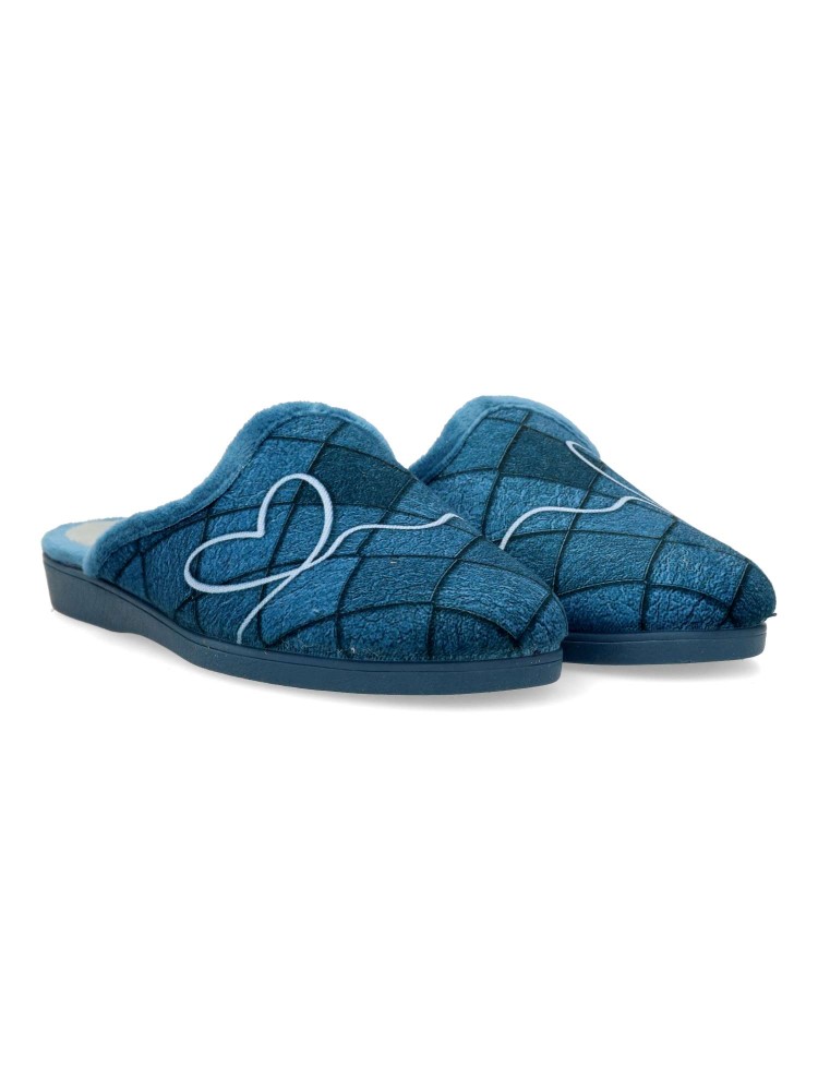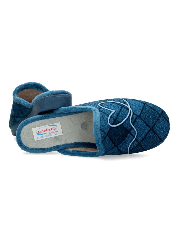 Zapatilla de casa para mujer en color jeans. Fabricada en textil aterciopelado, con suela de caucho antideslizante, flexible y ligera. Plantilla acolchada. Zapatilla que te ofrece comfort y te abriga en los días más fríos. Hecho en España.