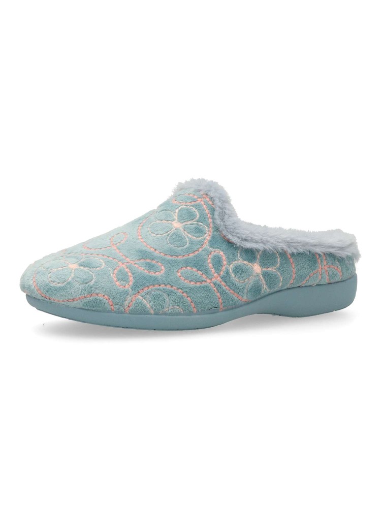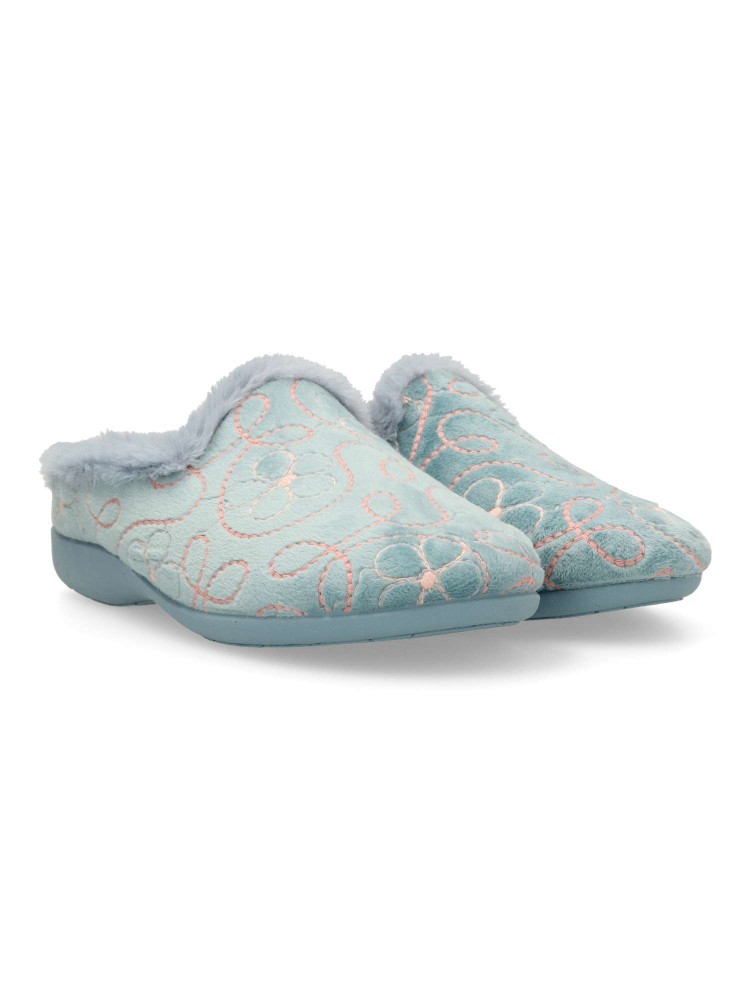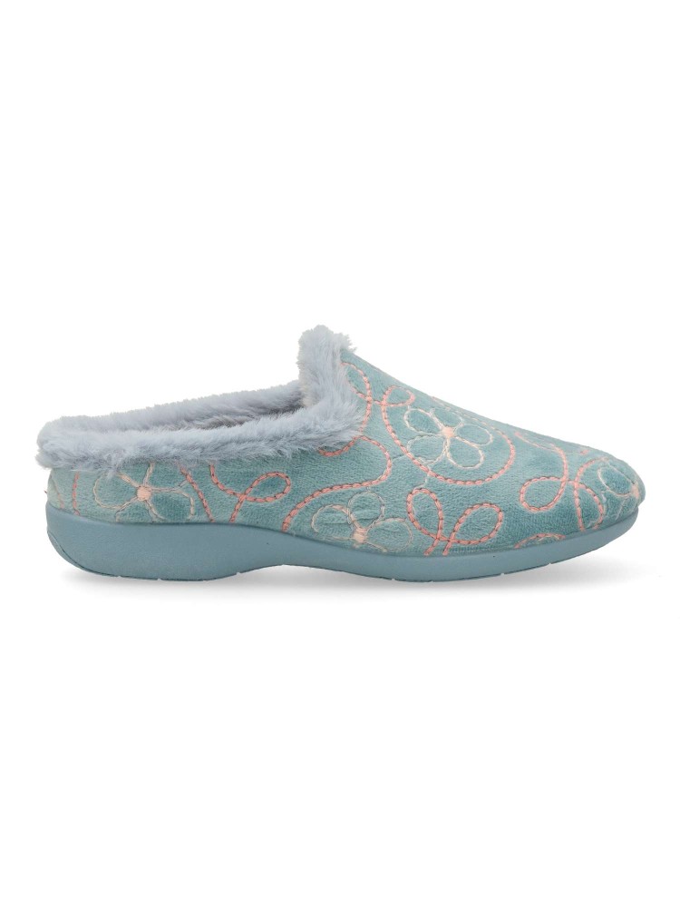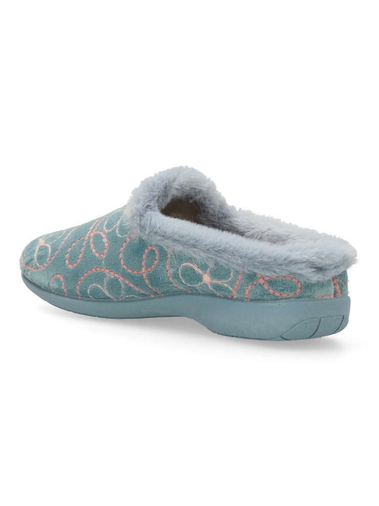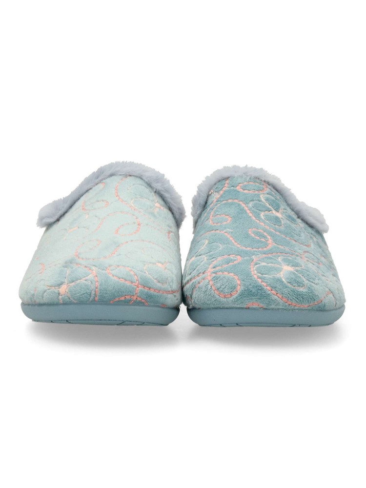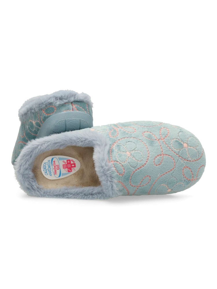 Zapatilla de casa para mujer. Fabricada en textil aterciopelado y cálido, con suela de caucho antideslizante, flexible y ligera. Plantilla acolchada y extraíble. Zapatilla que te ofrece confort y te abriga en los días más fríos. Hecho en España.