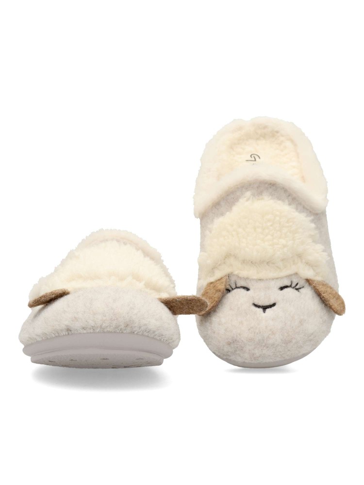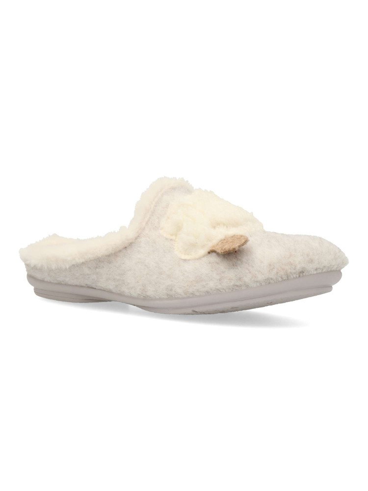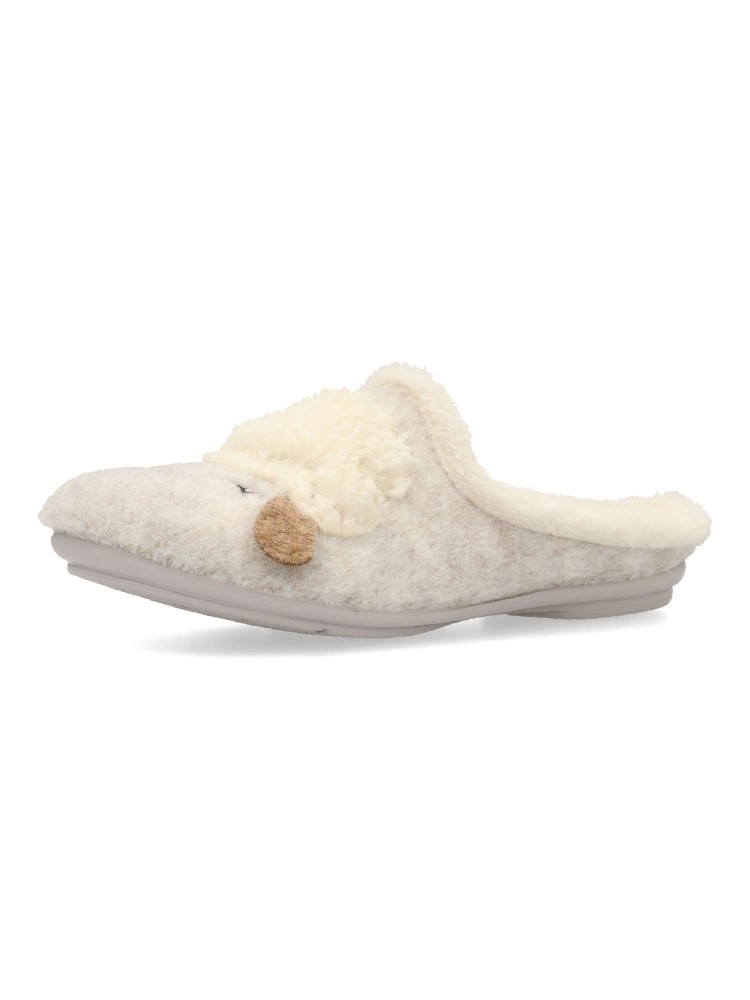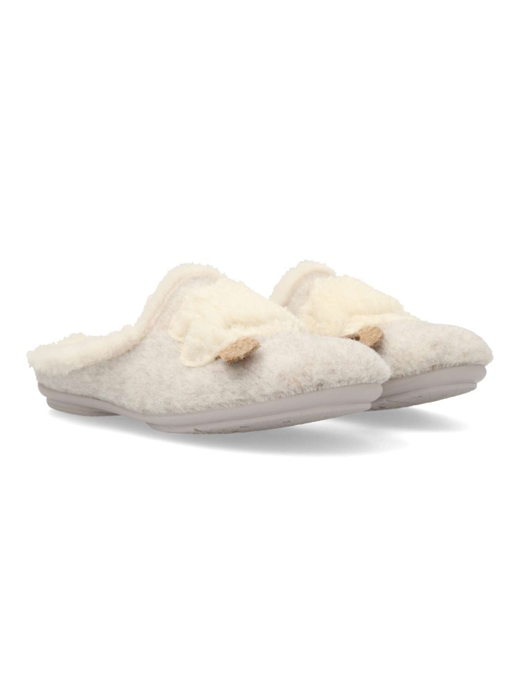 Zapatilla de casa confort para mujer. Disponible en color arena. Piso de goma flexible y antideslizante. Planta acolchada y extraíble. Zapatilla cómoda y abrigada para los días más fríos. PICOS (B. Oveja 3D). Hecho en España.