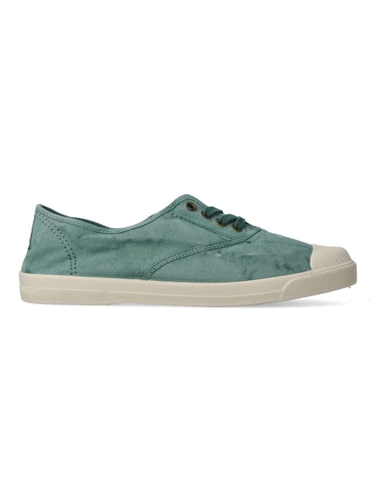 Zapatilla lona ingles efecto desgastado. Ha sido diseñada para el dia a dia. Hechas 100% en España con materiales ecológicos. La parte superior de la zapatilla está compuesta de algodón 100% orgánico y la suela es de caucho natural. Color albahaca.
