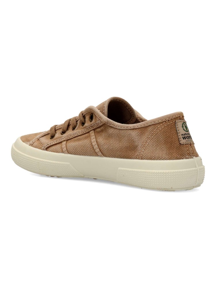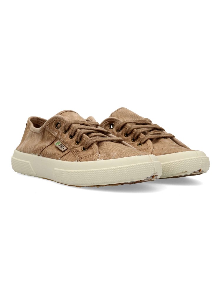 Zapatilla deportiva lona, estilo casual. Cierre de cordones. Sneakers cómodas, fabricadas con algodón orgánico GOTS y suela de caucho natural. Color beige efecto desgastado. Ideales para dar un toque desenfadado y sport a tus looks diarios.