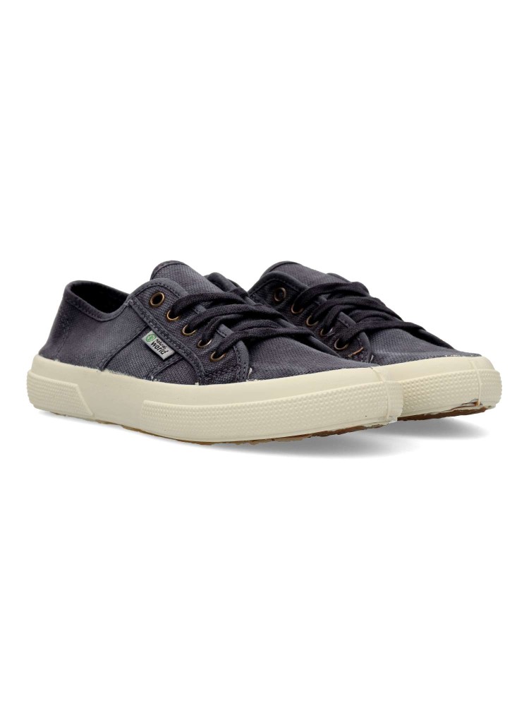 Zapatilla deportiva lona, estilo casual. Cierre de cordones. Sneakers cómodas, fabricadas con algodón orgánico GOTS y suela de caucho natural. Color marino efecto desgastado. Ideales para dar un toque desenfadado y sport a tus looks diarios.
