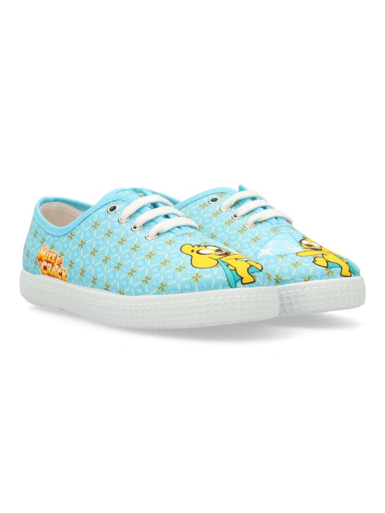 Zapatilla lona con cierre de cordones. Fabricado en textil poliester transpirable. Forro de algodón 100%.Suela plana de caucho natural flexible. Zapatillas Mikecrack, diseñadas para disfrutar de aventuras con tus escenas favoritas de la serie Mickecrack.