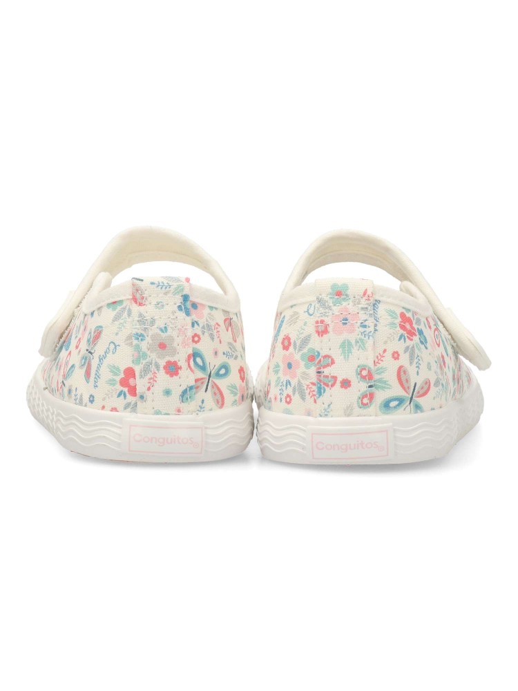 Merceditas Goflex Barefoot de lona multicolor con un original estampado de flores y mariposas, perfectas para dar un toque diferente al look diario. Cierre adherente, drop cero, puntera ancha, horma neutra y Tecnología Goflex con total flexibilidad.