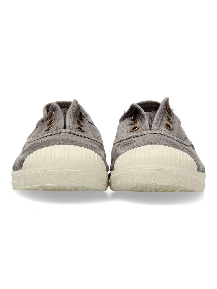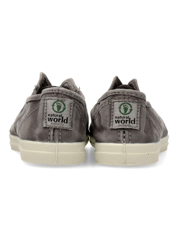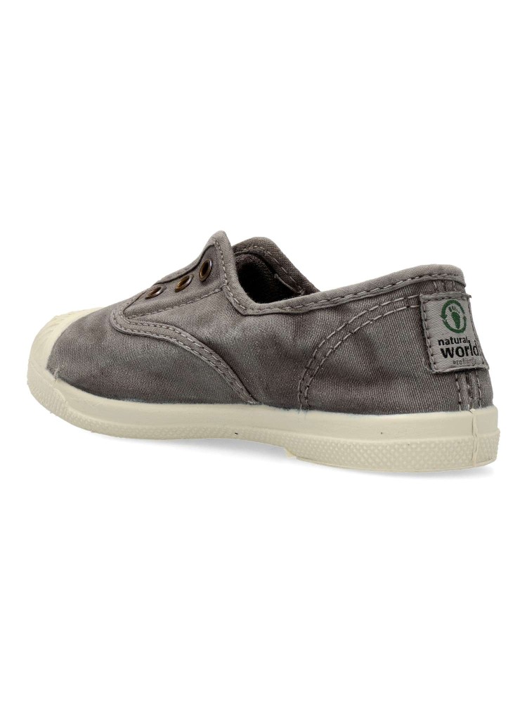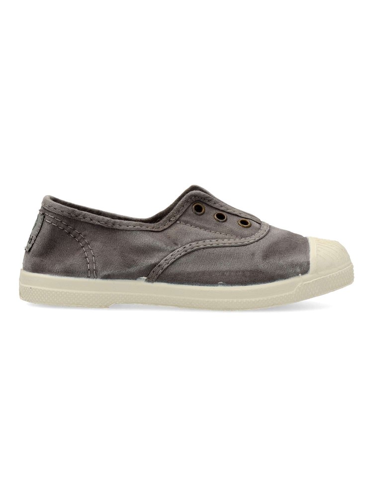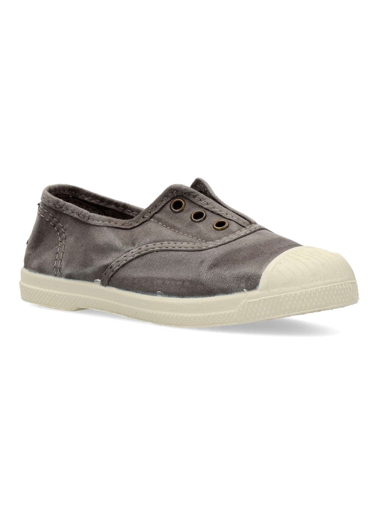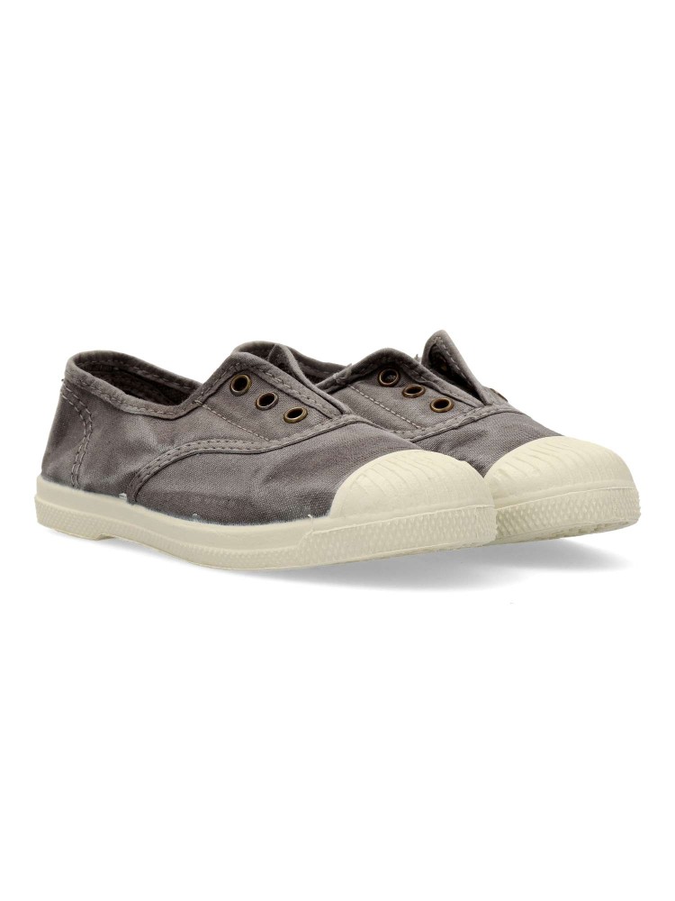 Zapatilla lona ingles efecto desgastado. Ha sido diseñada para el día a día. Hechas 100% en España con materiales ecológicos. La parte superior de la zapatilla está compuesta de algodón 100% orgánico y la suela es de caucho natural. Color gris.