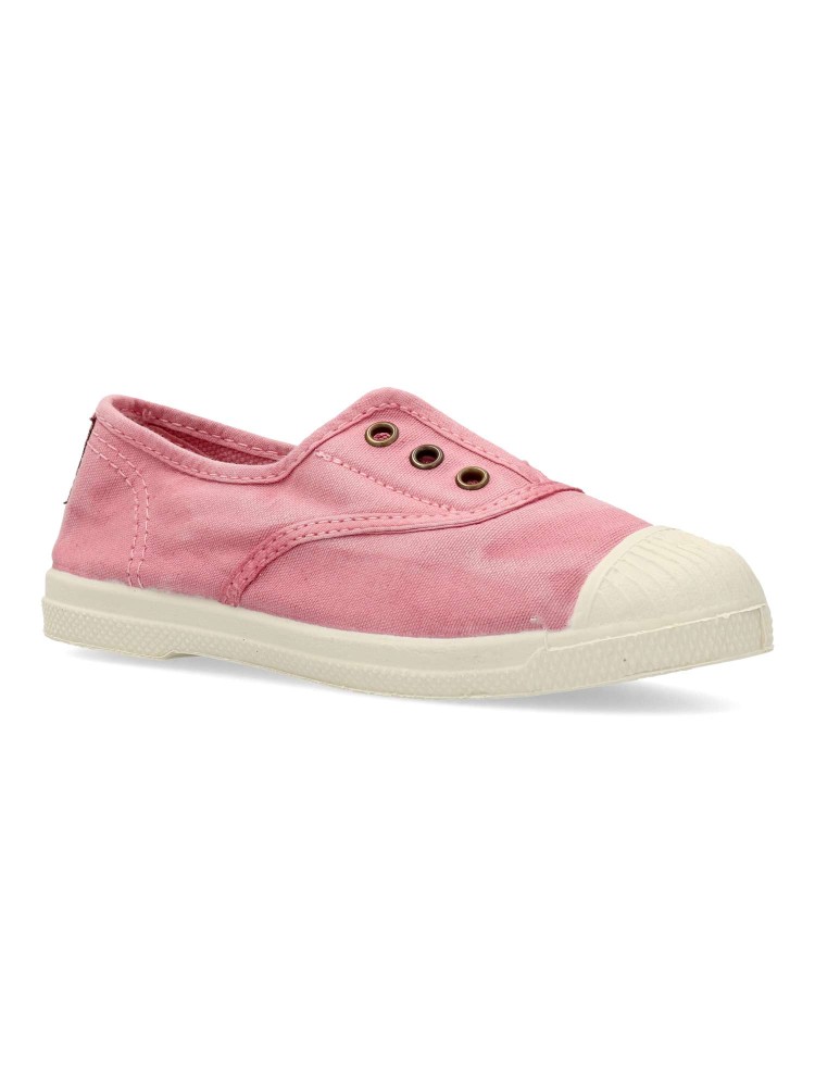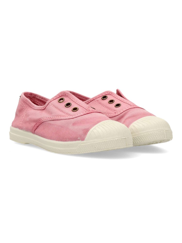 Zapatilla lona ingles efecto desgastado. Ha sido diseñada para el día a día. Hechas 100% en España con materiales ecológicos. La parte superior de la zapatilla está compuesta de algodón 100% orgánico y la suela es de caucho natural. Color rosa.