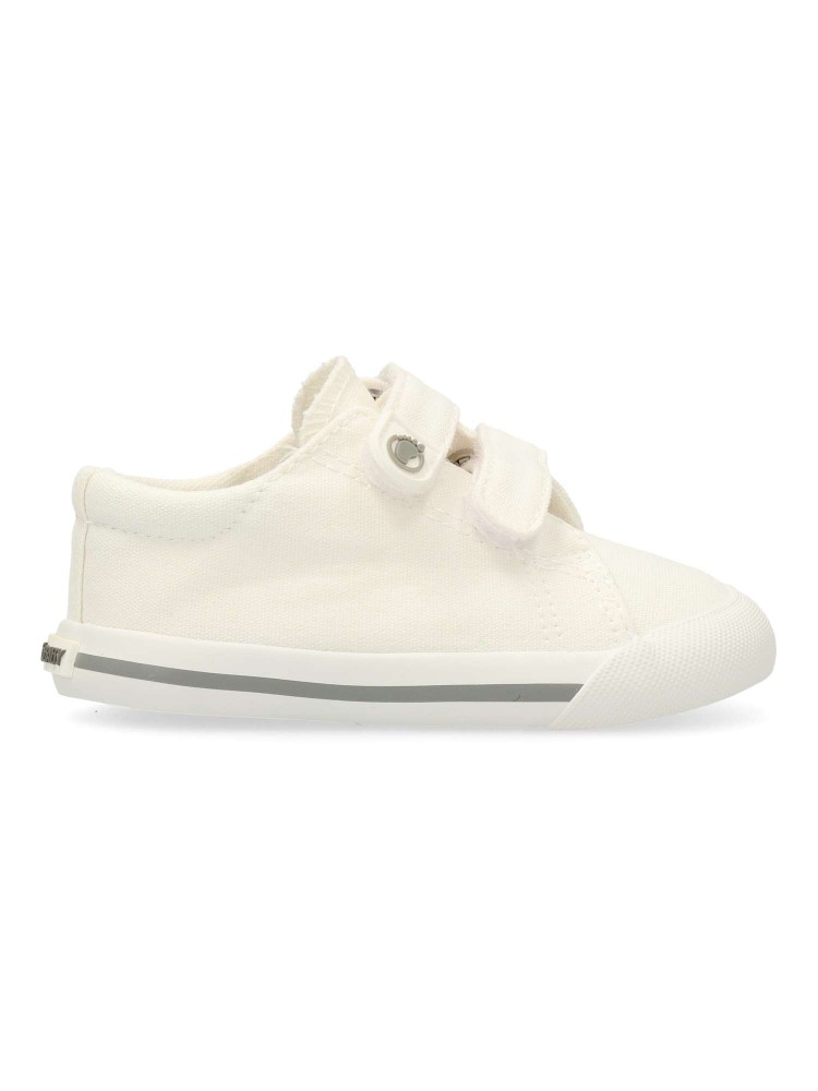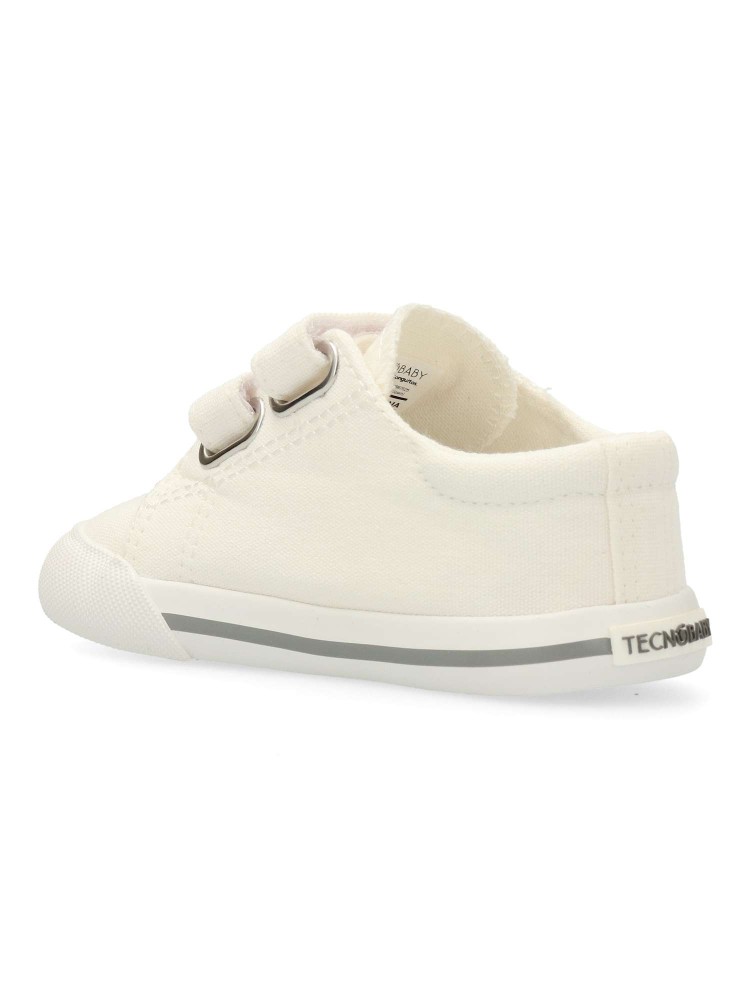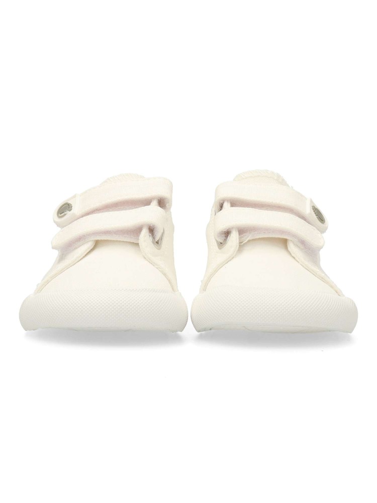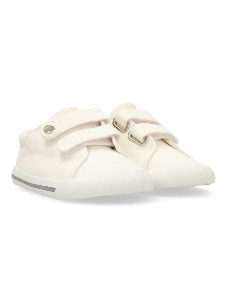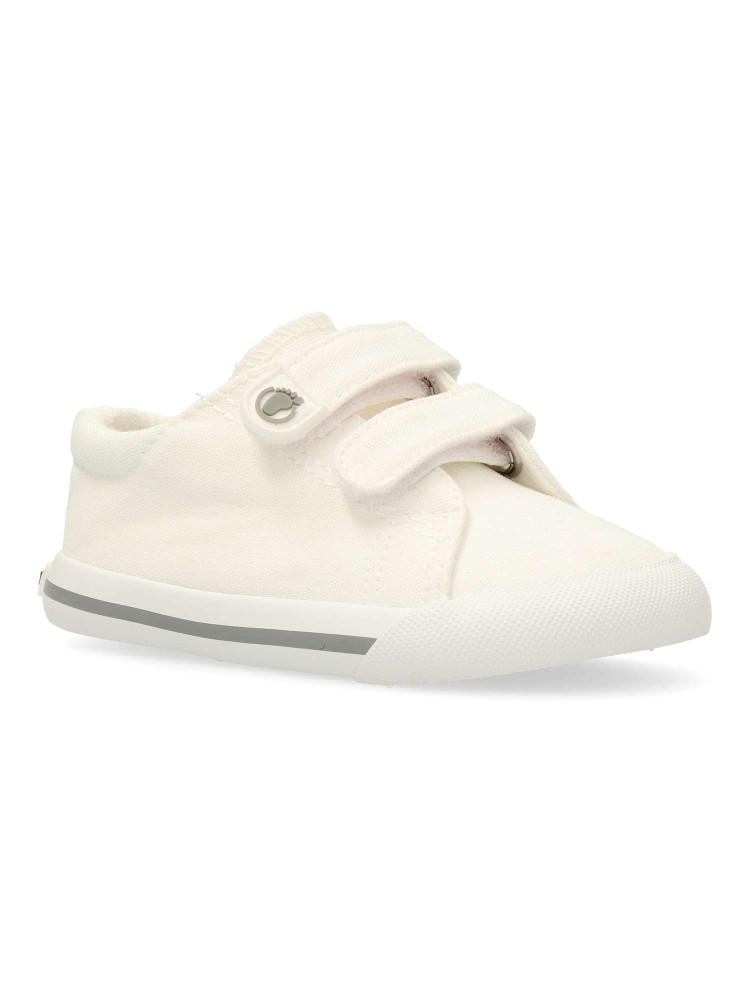 Zapatillas deportivas barefoot de lona blanca, un básico atemporal para el día a día con doble cierre de tira adherente para poner y quitar rápidamente. Diseño drop cero, puntera ancha, horma neutra y flexibilidad total para seguir cada paso y movimiento.
