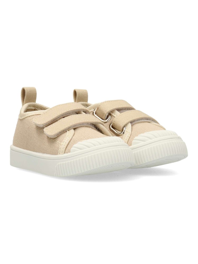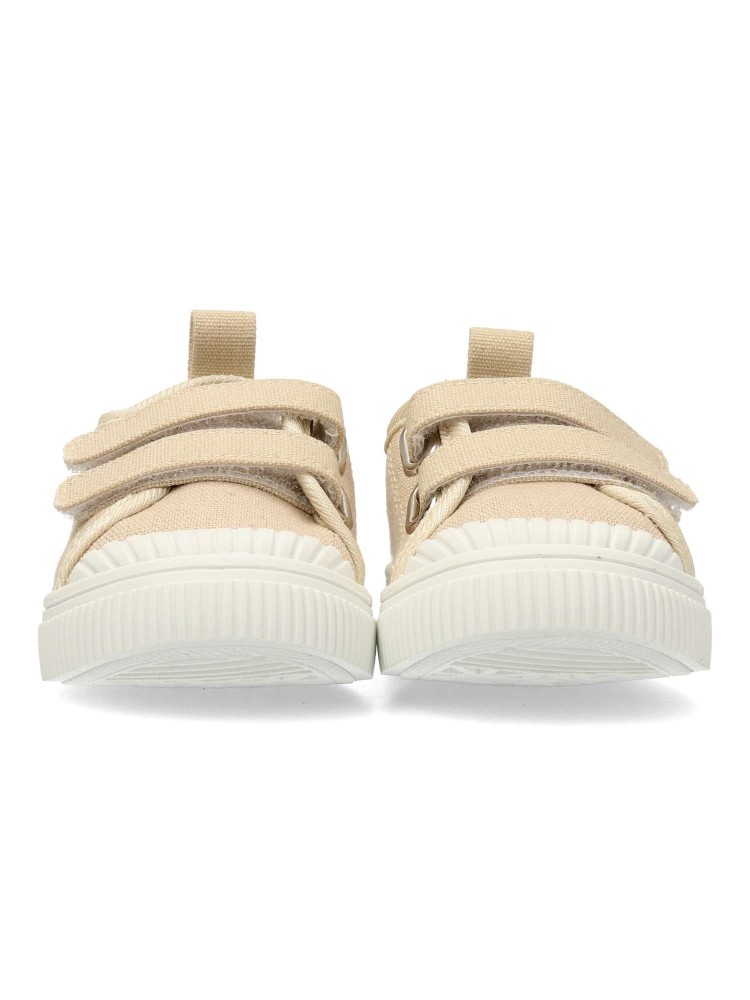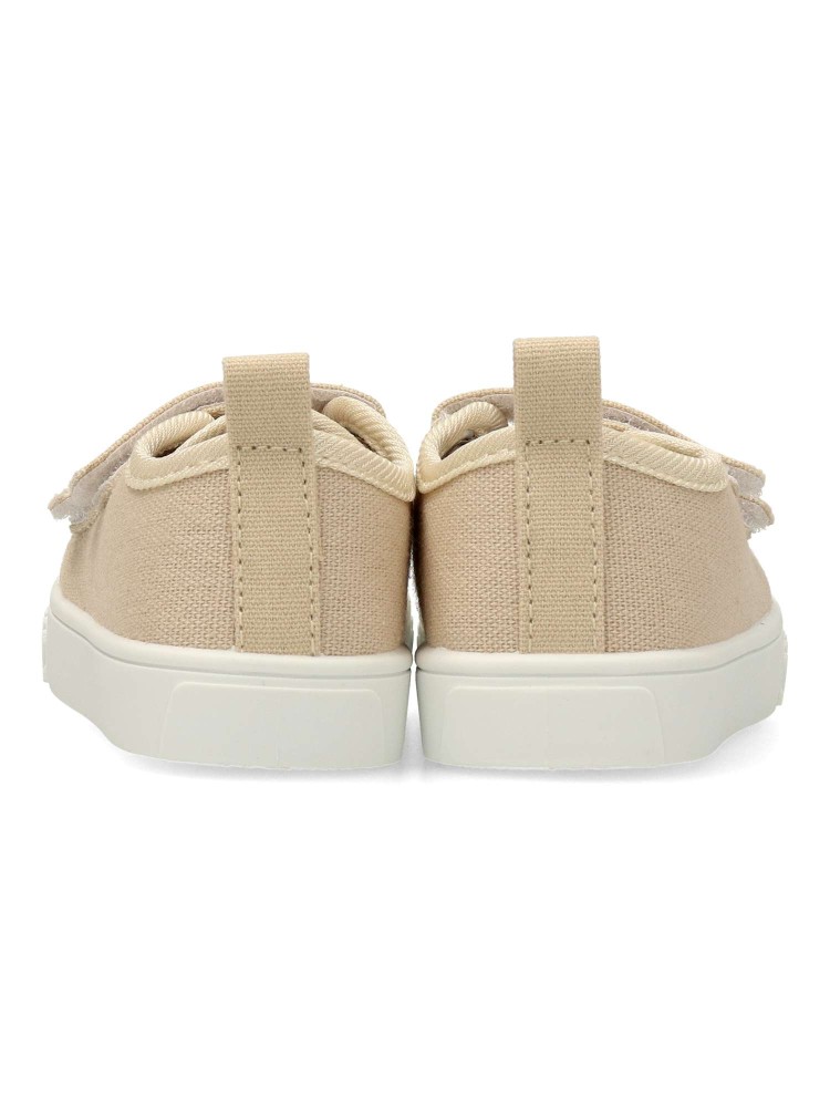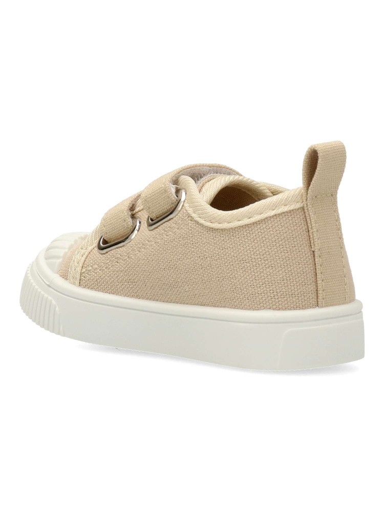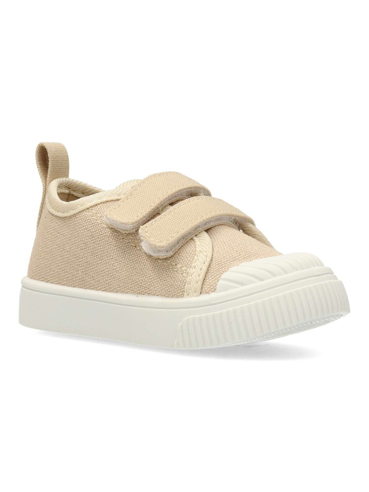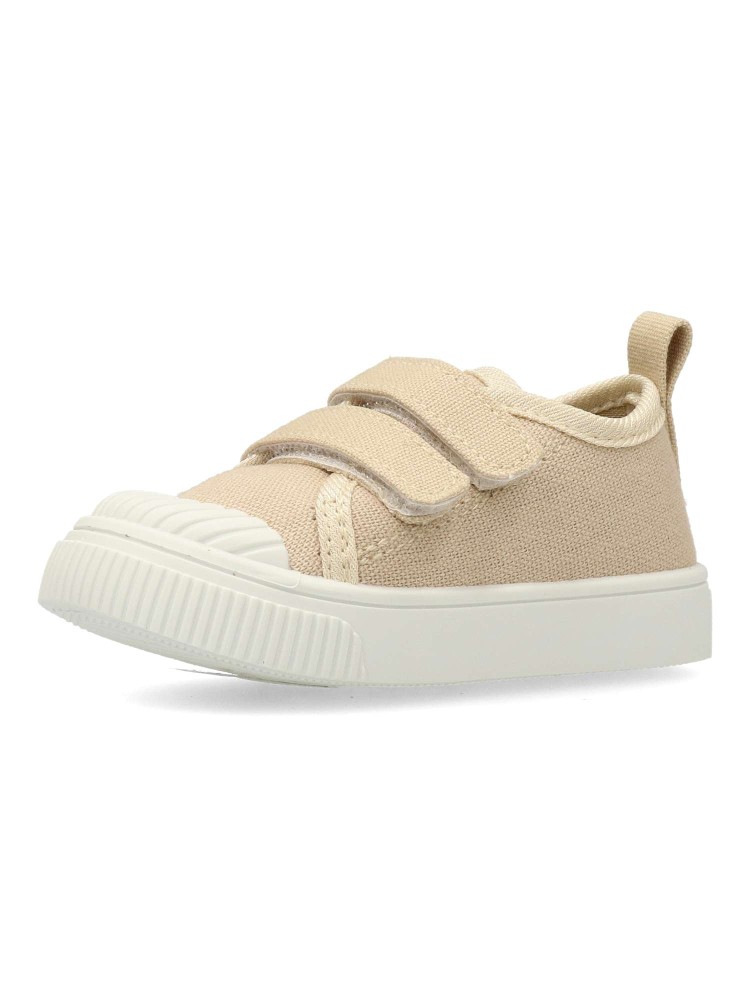 Zapatilla deportiva de lona, estilo casual. Cierre de tiras adherentes. Basket cómodo, fabricado en textil, con suela de goma flexible. Plantilla acolchada y extraíble. Color beige. Diseño clásico y versátil ideal para que los peques no paren de jugar.