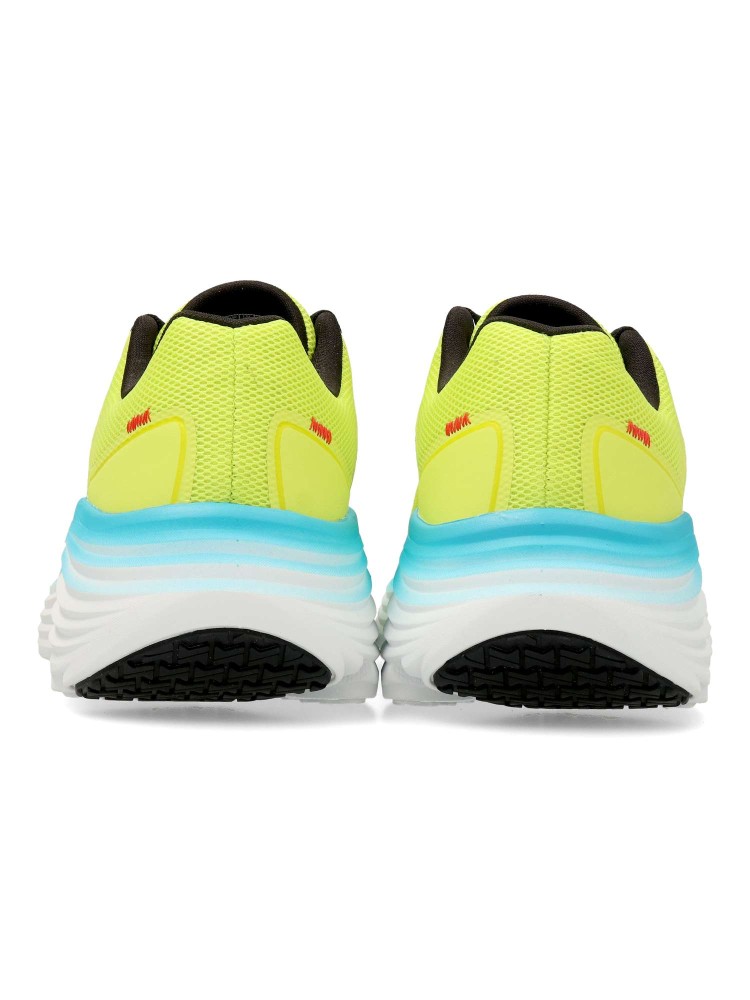 Zapatilla running con parte superior de malla técnica con capas sintéticas superpuestas, una plantilla Skechers Air-Cooled Goga Mat™, espuma de amortiguación Skechers Soft Stride™ y una media suela con amortiguación ULTRA LIGHT con retorno de energía.