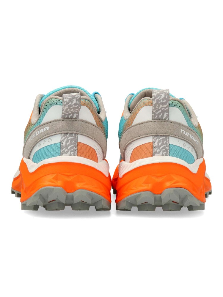 Zapatilla deportiva de mujer Tundra. Destinado a trail runners que busquen un equilibrio entre amortiguación, reactividad y estabilidad. Fabricado en material textil flexible y transpirable, con el sistema VTS. Mediasuela de phylon y suela de caucho.