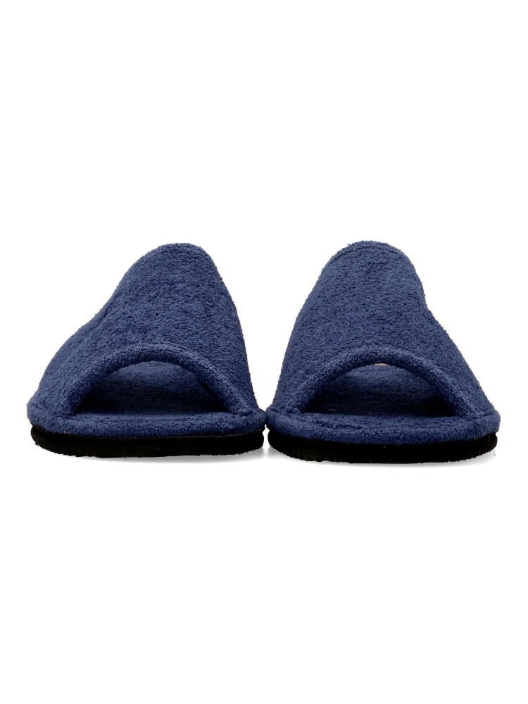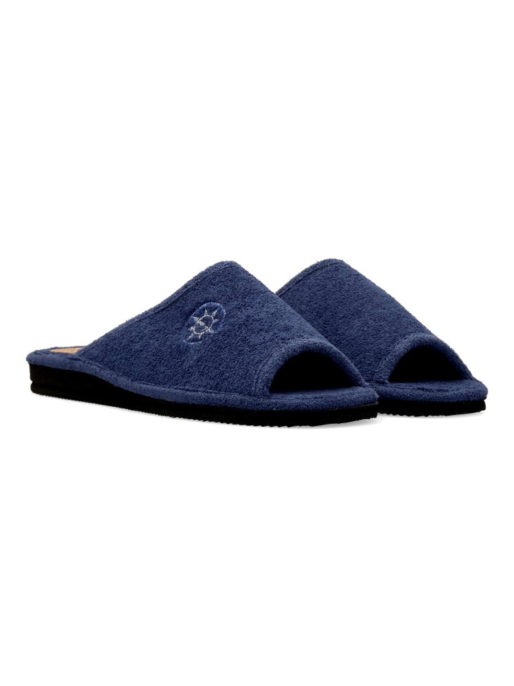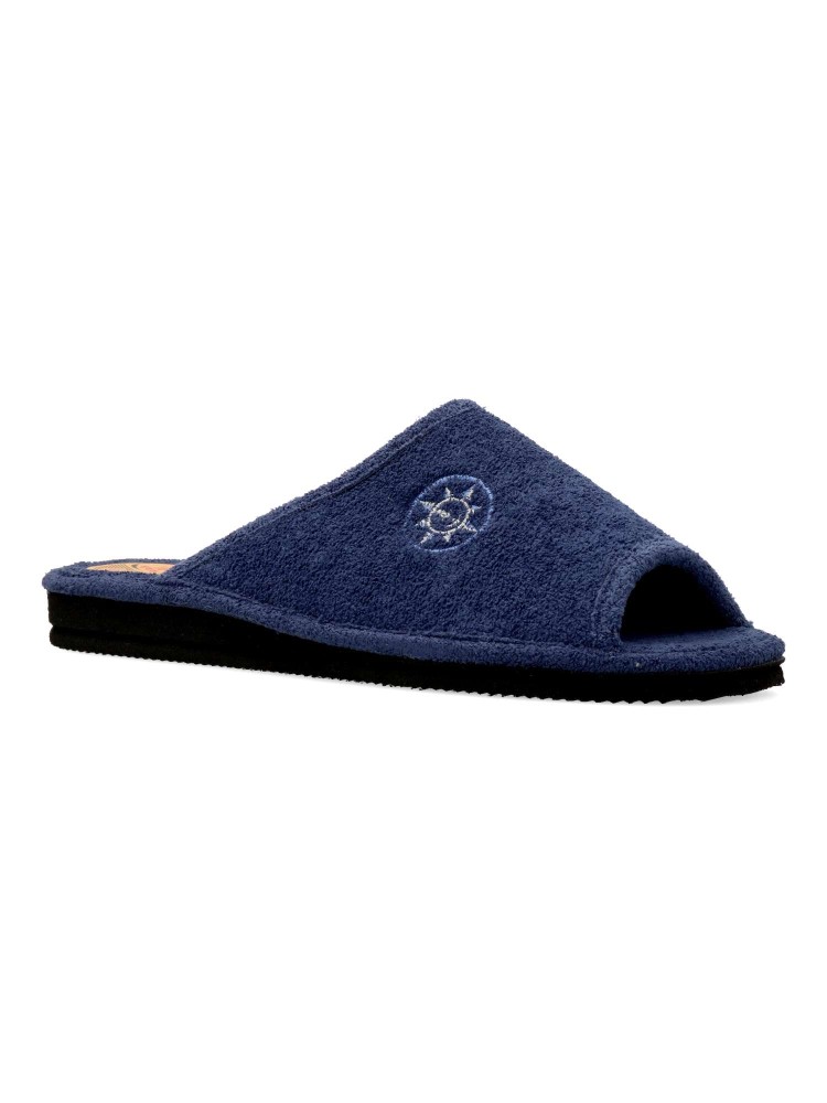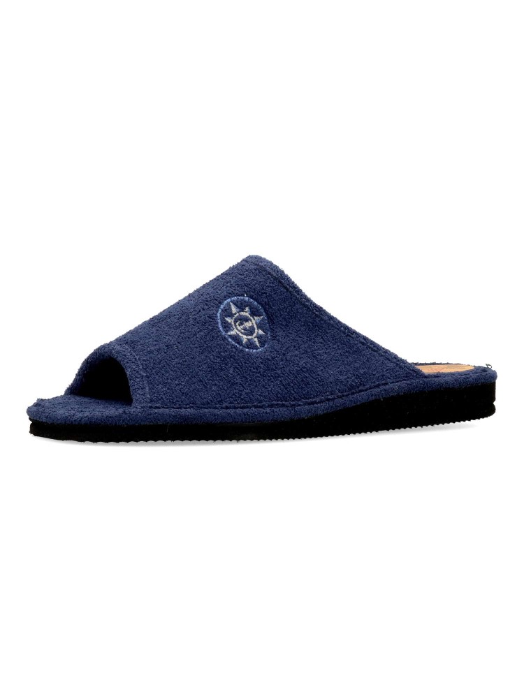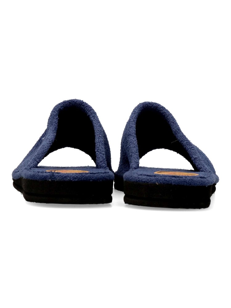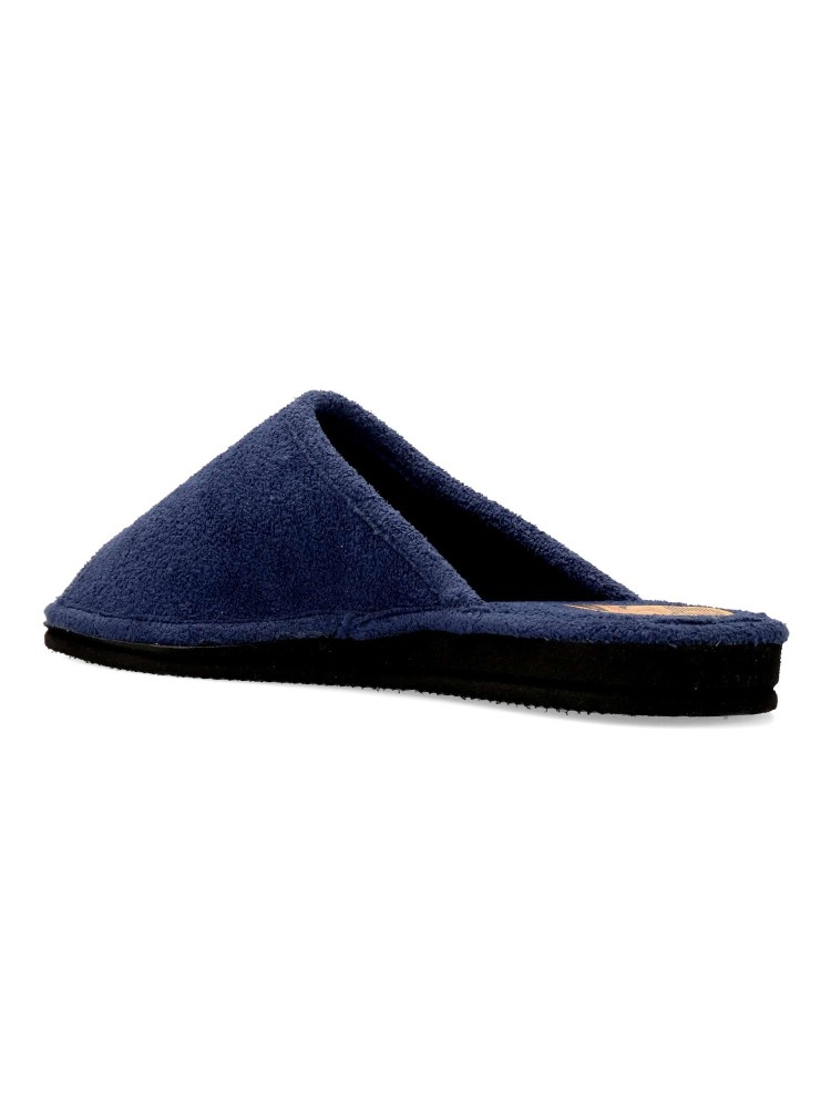 Zapatilla de casa para hombre. Modelo cómodo y ligero, fabricado en textil rizo acolchado y suave, con suela de goma EVA (especial parquet). Color marino. Puntera descubierta pinky. Confort máximo para estar en casa. Hecho en España.