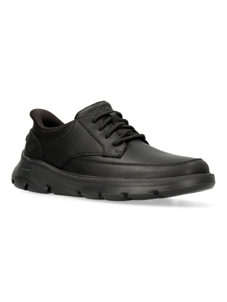 Diseñado con nuestro Heel Pillow™, este modelo de negocios casual ha recibido el sello de aceptación de la APMA y cuenta con una parte superior de piel y material sintético con cordones elásticos fijos y una plantilla Air-Cooled Arch Fit®. Color negro.