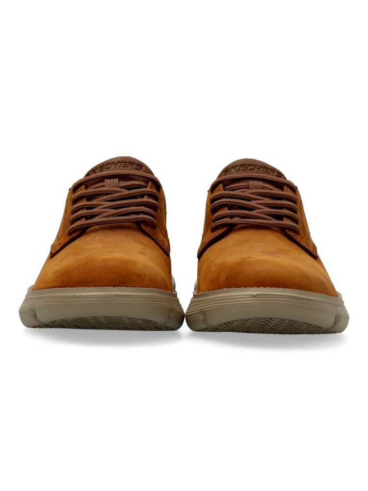 Diseñado con la exclusiva Heel Pillow™, presenta parte superior de piel con cordones elásticos y una cómoda plantilla Skechers Air-Cooled Memory Foam® con carbón y amortiguación Memory Arch™ para un mejor apoyo. Comodidad y sencillez en un modelo clásico.