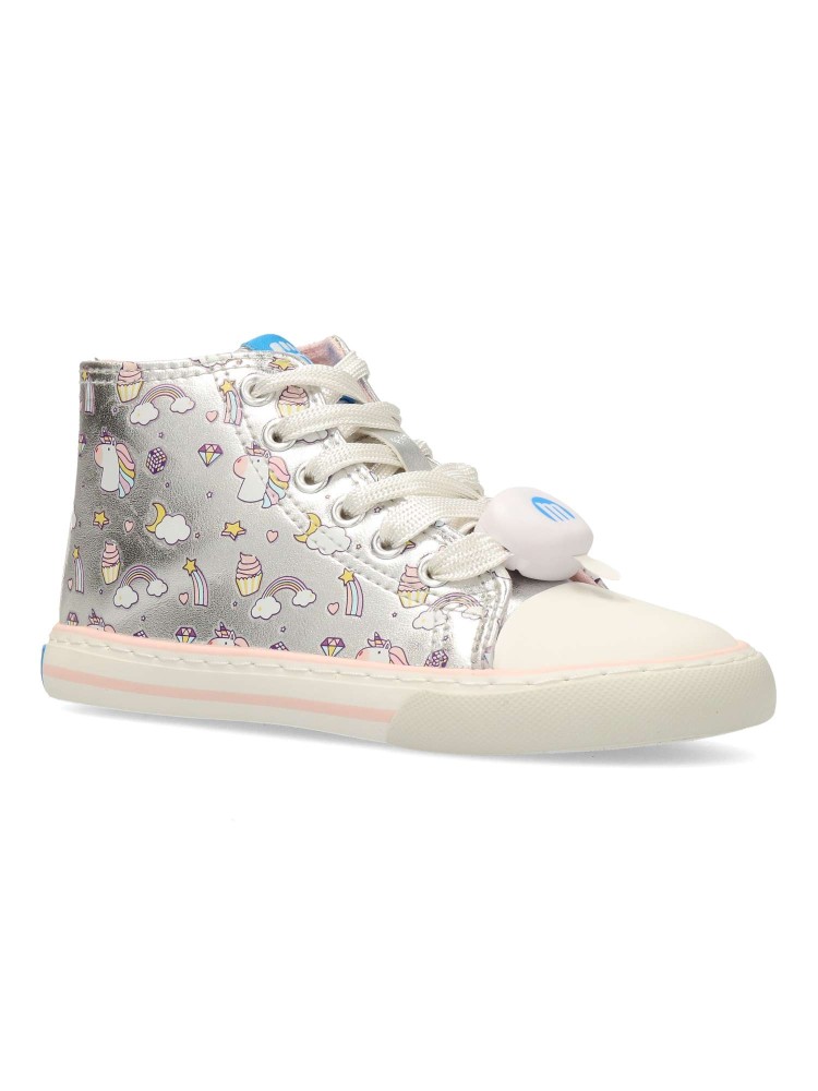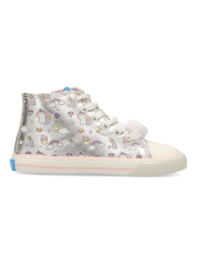 Botitas barefoot Glist Silver – Unicornios con luces. Gracias a su suela flexible y ligera, horma ancha y cero drop, respetan el movimiento natural del pie y ofrecen toda la comodidad del estilo barefoot. Luces en los cordones, destello de fantasía.