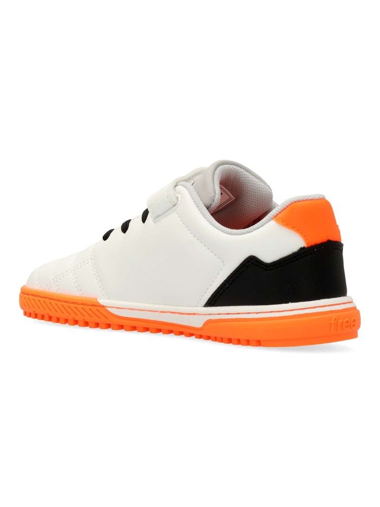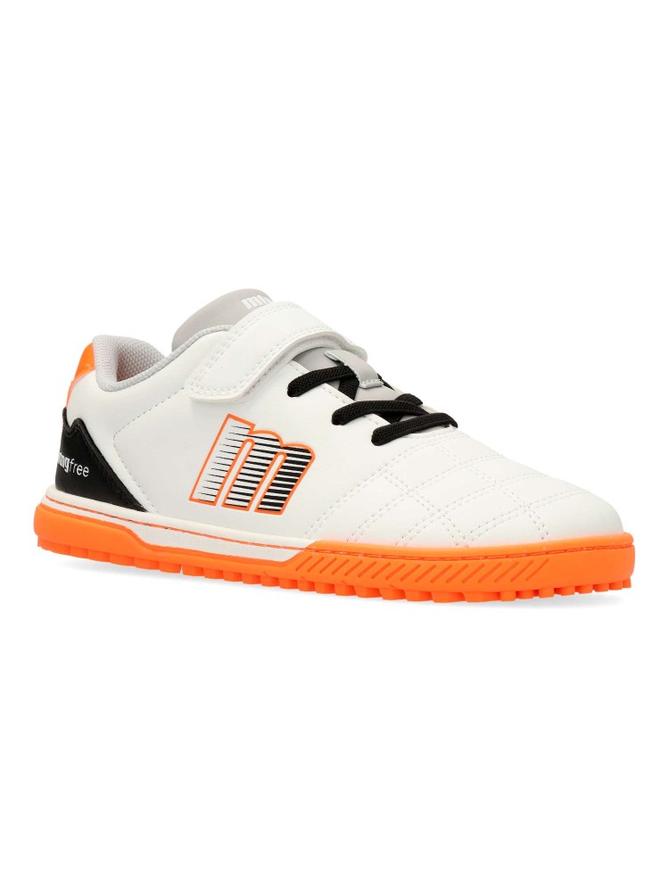 Botas Mustang Fútbol Free. Diseñadas para respetar la pisada natural y optimizar el rendimiento. Botas barefoot con multitacos, pensadas para niños y niñas que juegan sobre césped artificial o moqueta, combinando salud, agarre y funcionalidad en cada paso