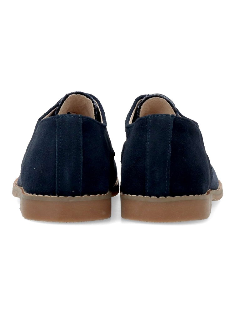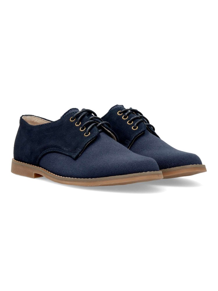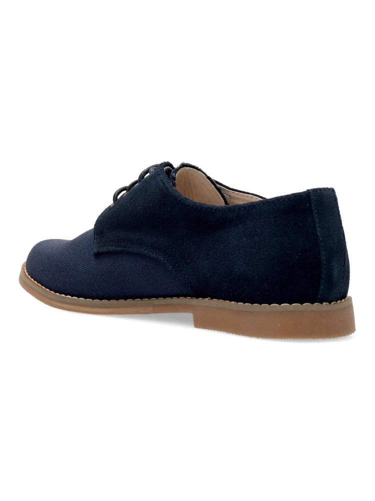 Zapato comunión de niño, con cierre de cordones. Modelo cómodo fabricado en piel y textil, con suela de goma. Forro interior y plantilla de piel. Color marino. Zapato de vestir cómodo, ligero y transpirable, ideal para comuniones y celebraciones.