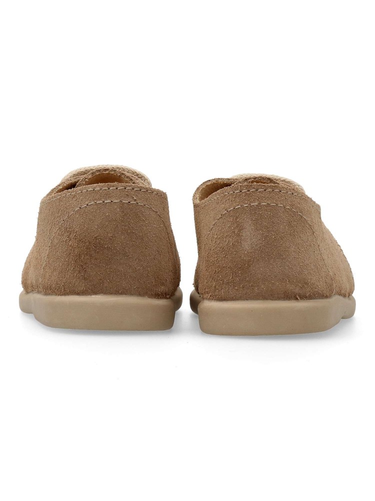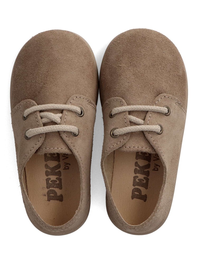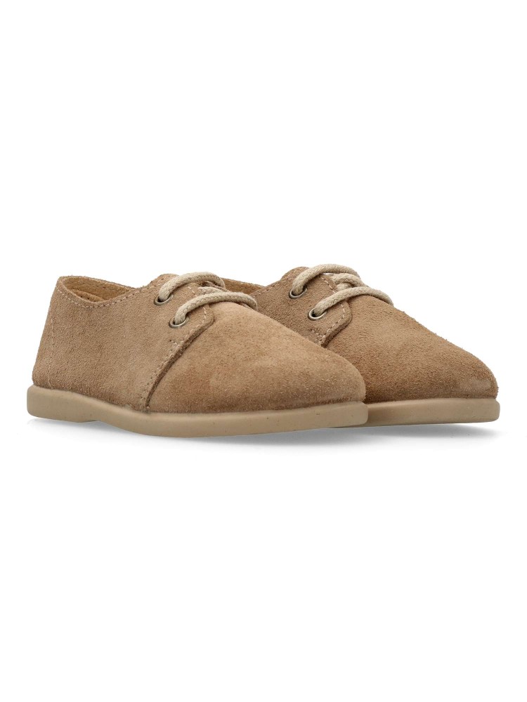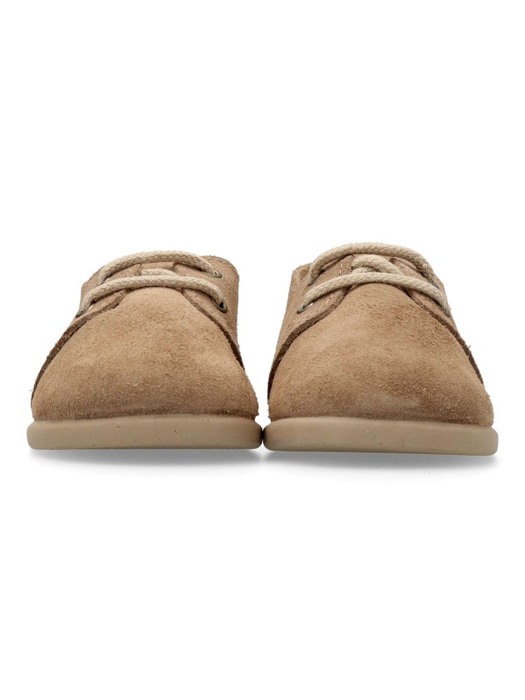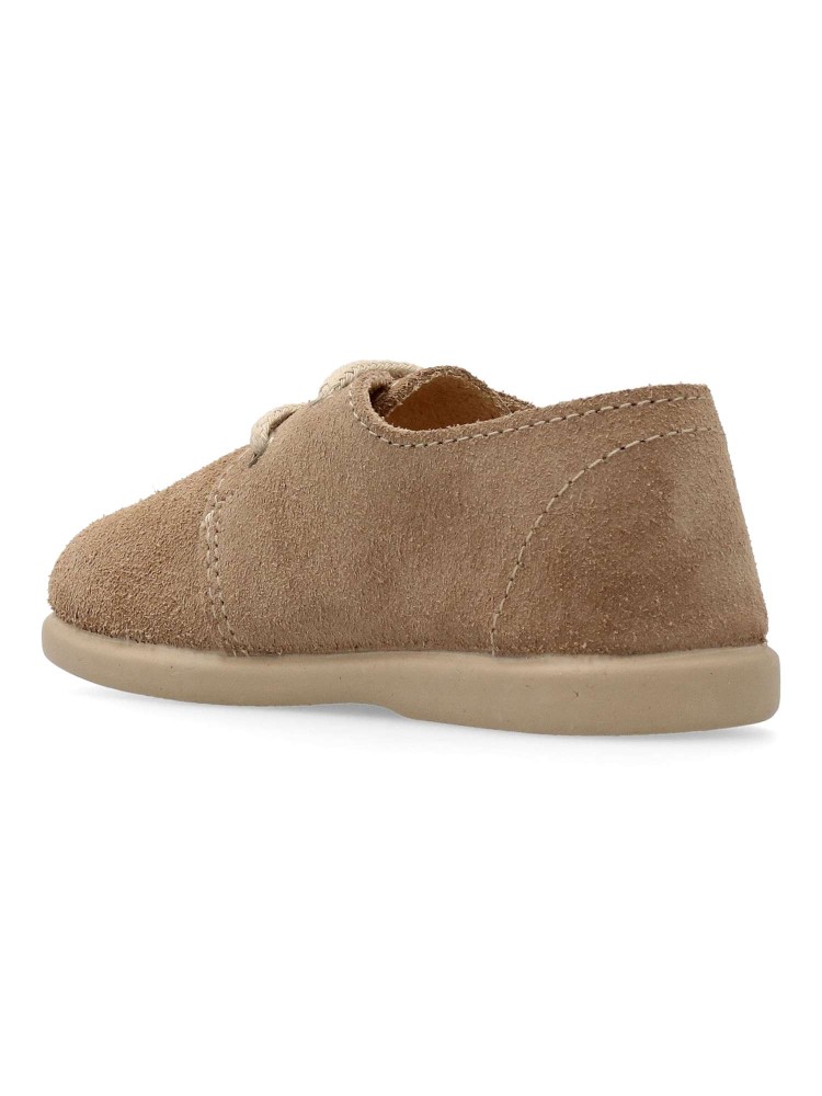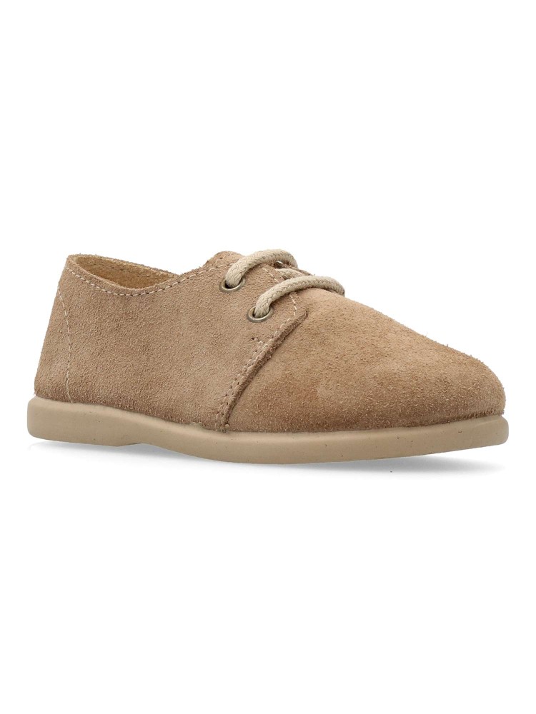 Zapato de vestir para niño, tipo blucher. Modelo cómodo, fabricado en piel serraje, con suela de goma ligera, flexible y antideslizante. Color beige. Ideales tanto para eventos formales, como para tu día a día. Respetan el desarrollo natural del pie.