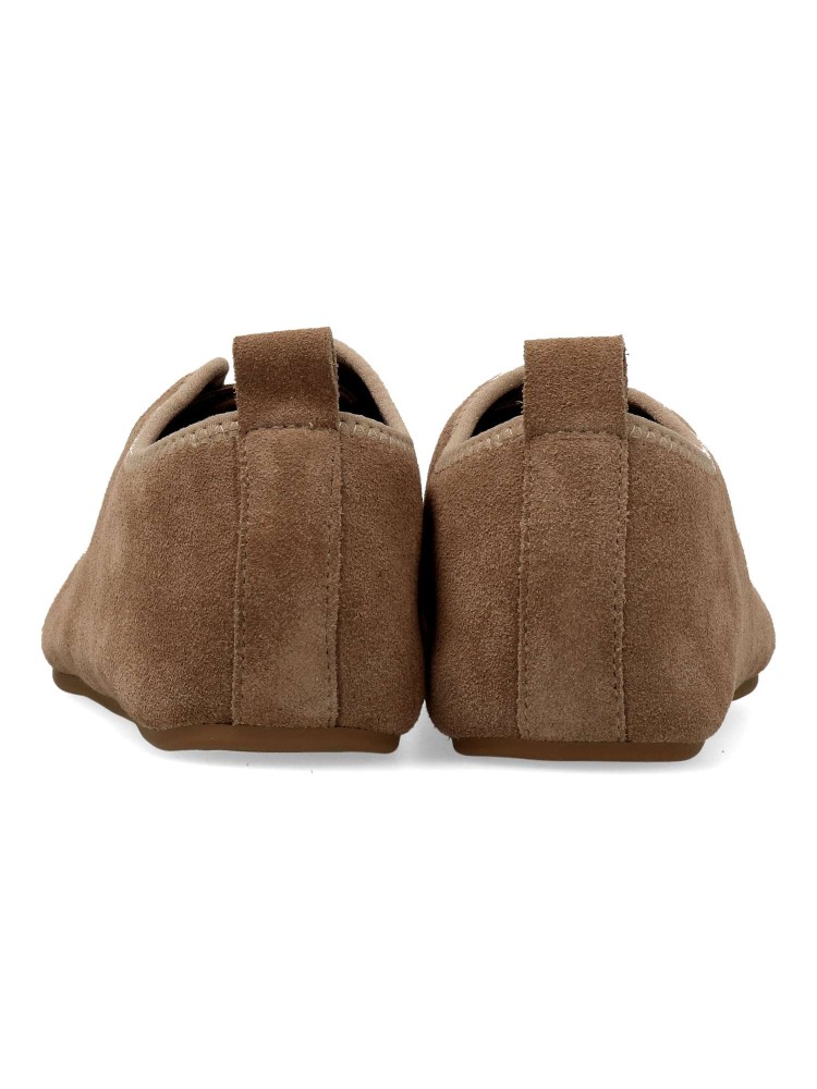 Zapato mocasín plano de mujer. Fabricado en piel serraje, con suela de goma flexible. Forro interior y plantilla acolchada de piel. Color taupe. Cordón elástico al empeine. Diseño original y versátil, que ofrece el máximo confort para tu día a día.