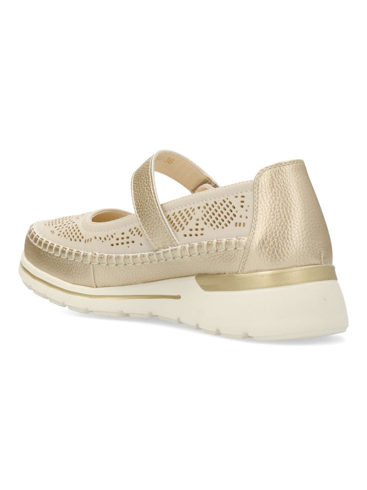 Zapato mercedita de mujer, estilo casual. Modelo cómodo, fabricado en piel sintética suave y picada. Suela de goma ligera y flexible. Plantilla acolchada y extraíble. Color platino. Mocasín elegante que te dará el máximo confort en tu día a día.