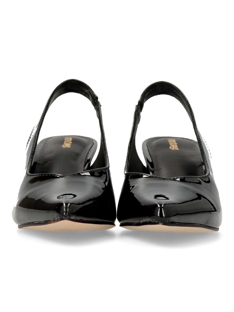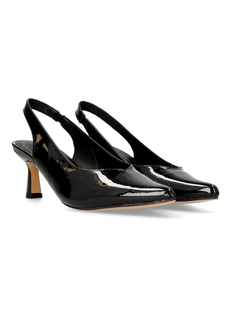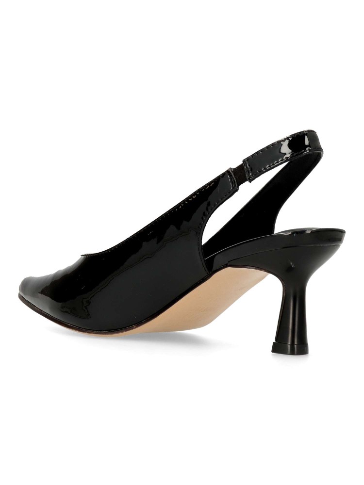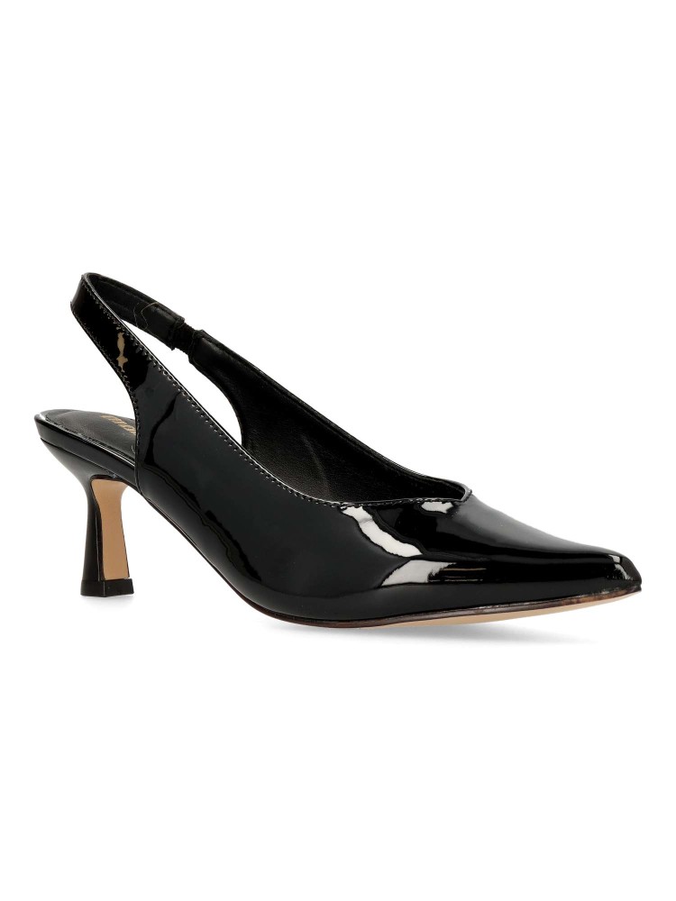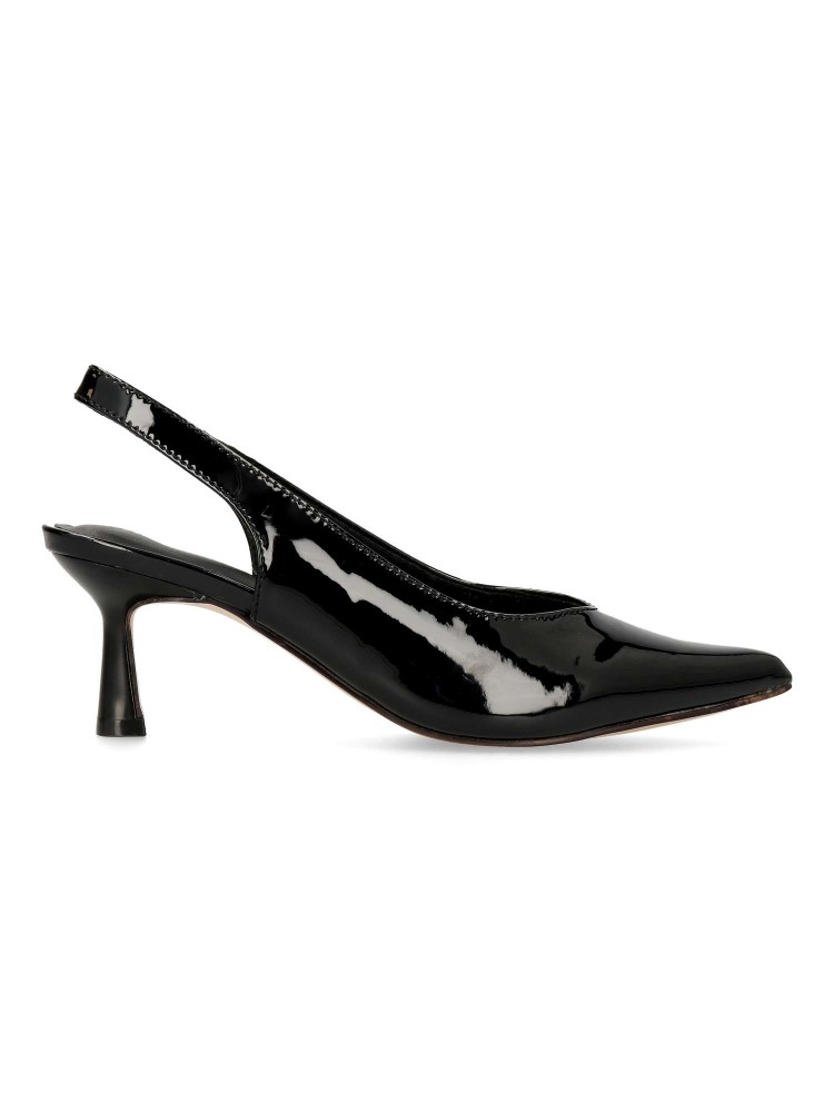 Zapatos de tacón destalonados para mujer, con diseño clásico y acabado brillante tipo charol. Altura 6 cm. Ideales para ocasiones especiales o para complementar looks formales. Opción versátil para quienes buscan comodidad sin renunciar al estilo.