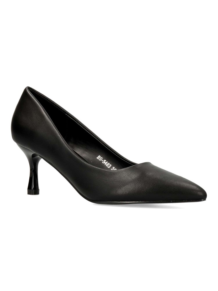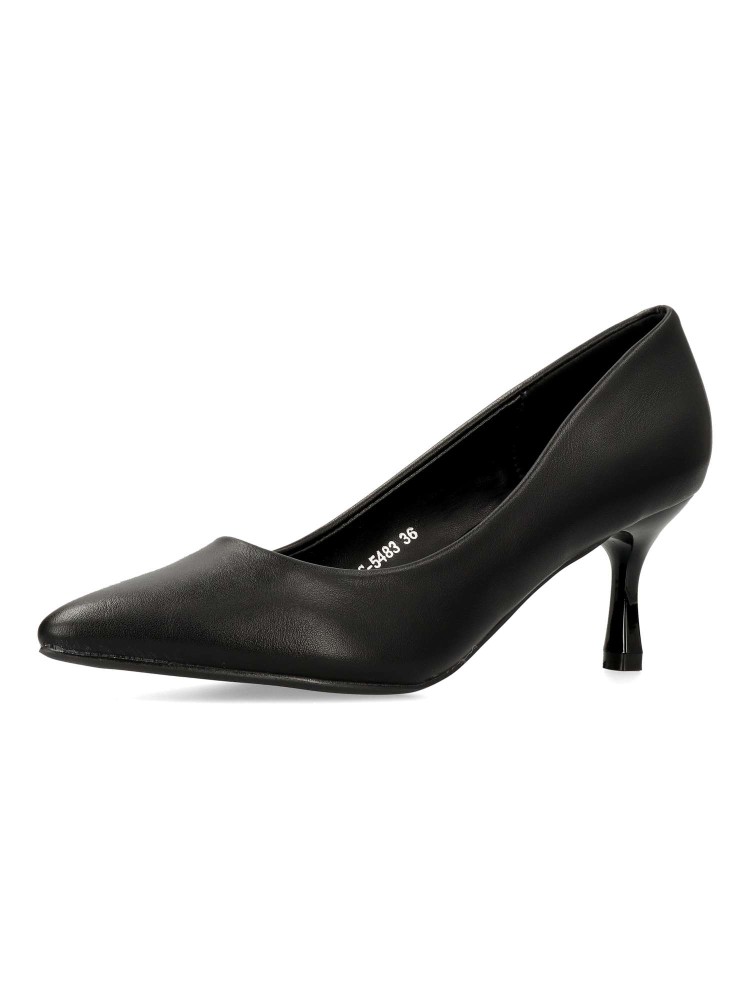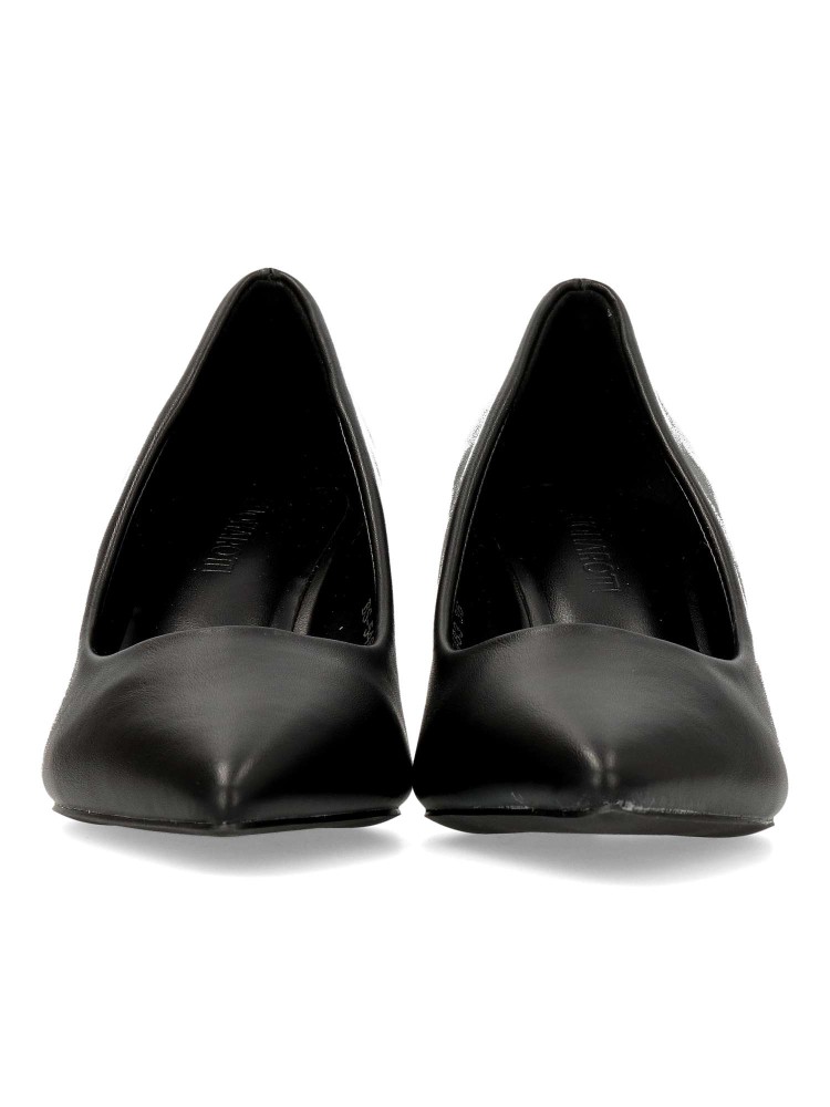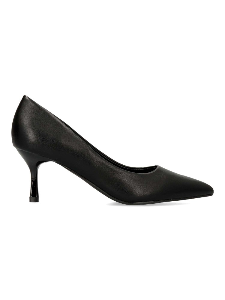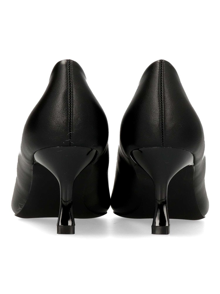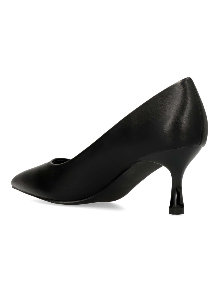 Zapato salón de mujer, con puntera y tacón fino de 6 cm. de altura. Modelo sin cierre, fabricado en material sintético color negro, con suela de goma. Planta acolchada. Ideal tanto para tu día a día, como para fiestas y ocasiones especiales.