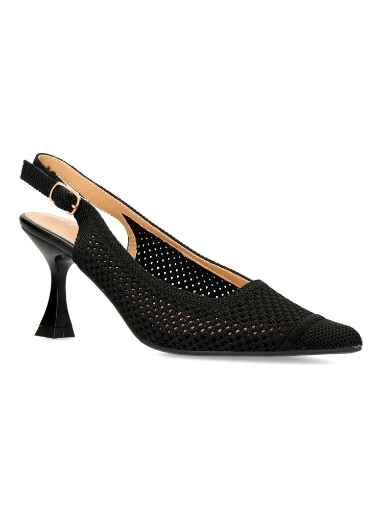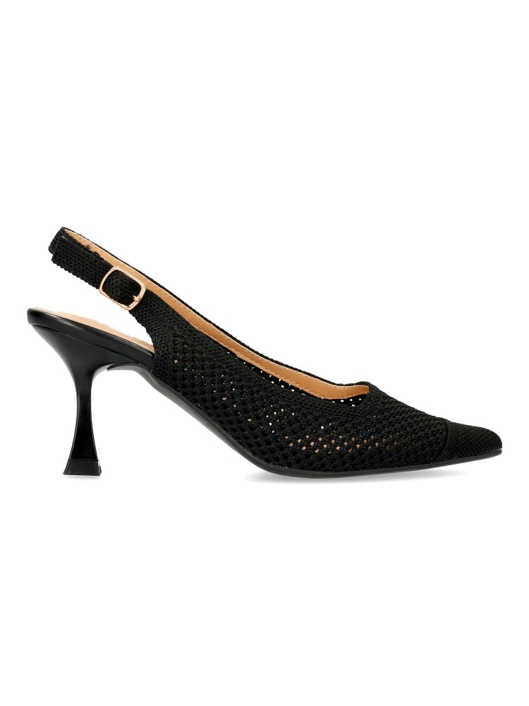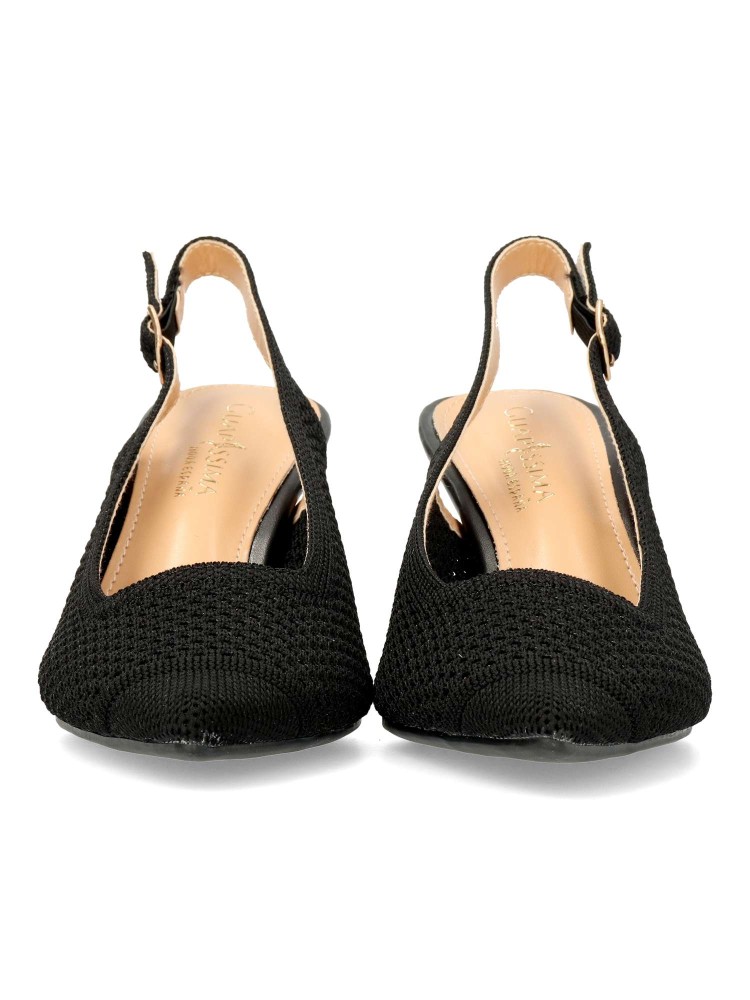 Salón cómodo de mujer destalonado. Fabricado en material textil transpirable color negro. Planta acolchada. Tacón fino de 7 cm. de altura. Modelo cómodo y elegante, ideal tanto para tu día a día, como para eventos y celebraciones.