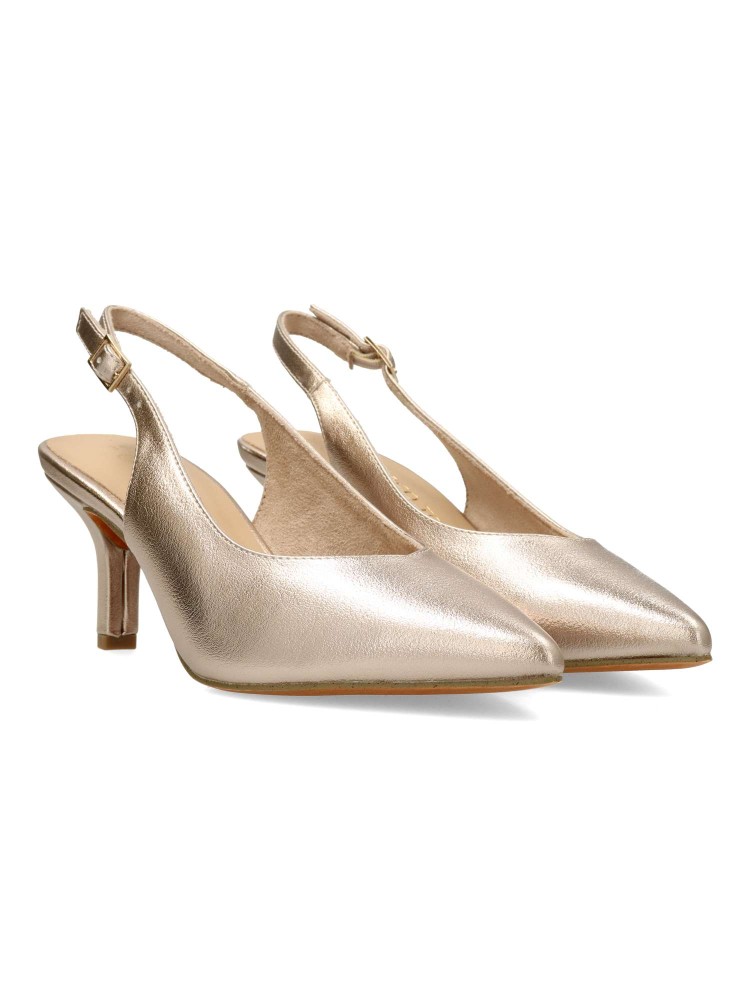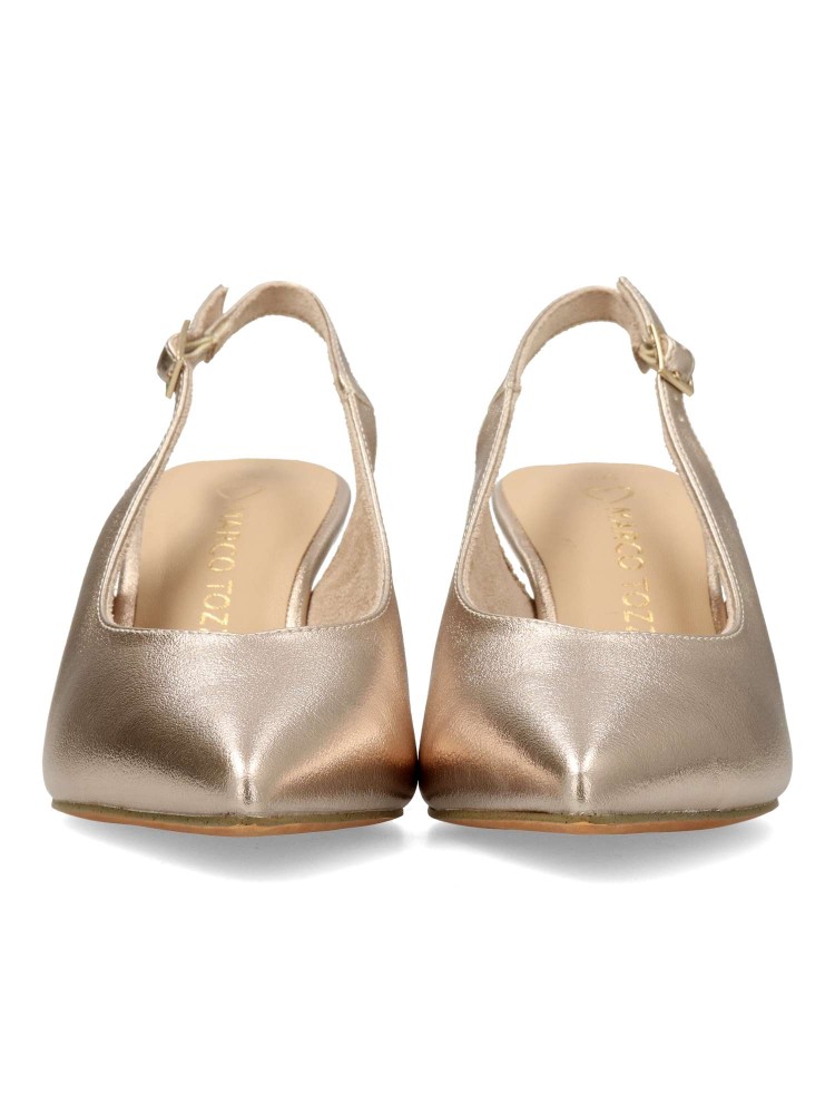 Zapato salón para mujer, con punta fina y destalonado. Fabricado en material 100% vegano. Planta acolchada. Cierre de hebilla. Perfectos para la mujer moderna que aprecia los detalles únicos y la máxima comodidad. Añade un toque de glamour a tu look.