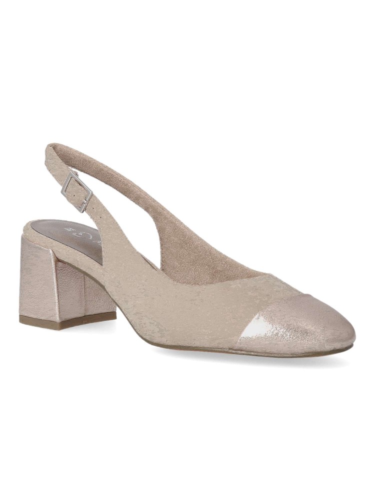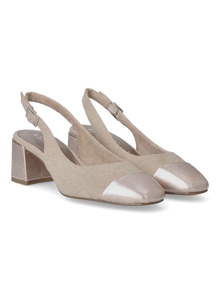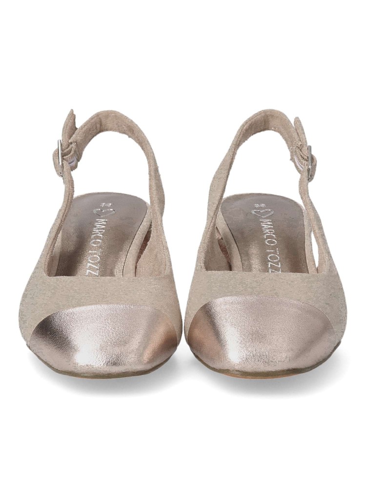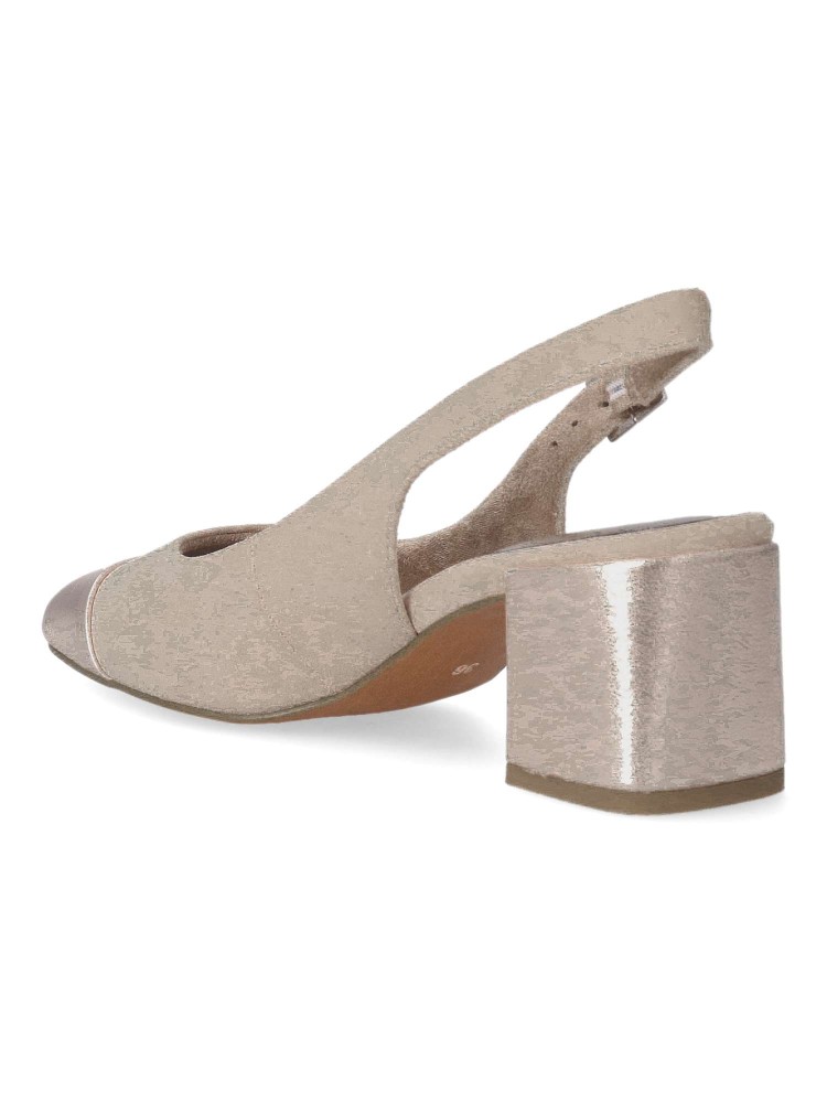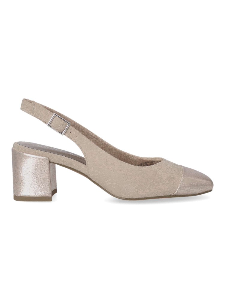 Zapato salón destalonado para mujer. Modelo cómodo, fabricado en piel sintética, con suela de goma. Platilla acolchada con tecnología FEEL ME para mayor comodidad. Color dune-bronce. Tacón de 5,5 cm. Ideal tanto para oficina como para ocio. 100% vegano.